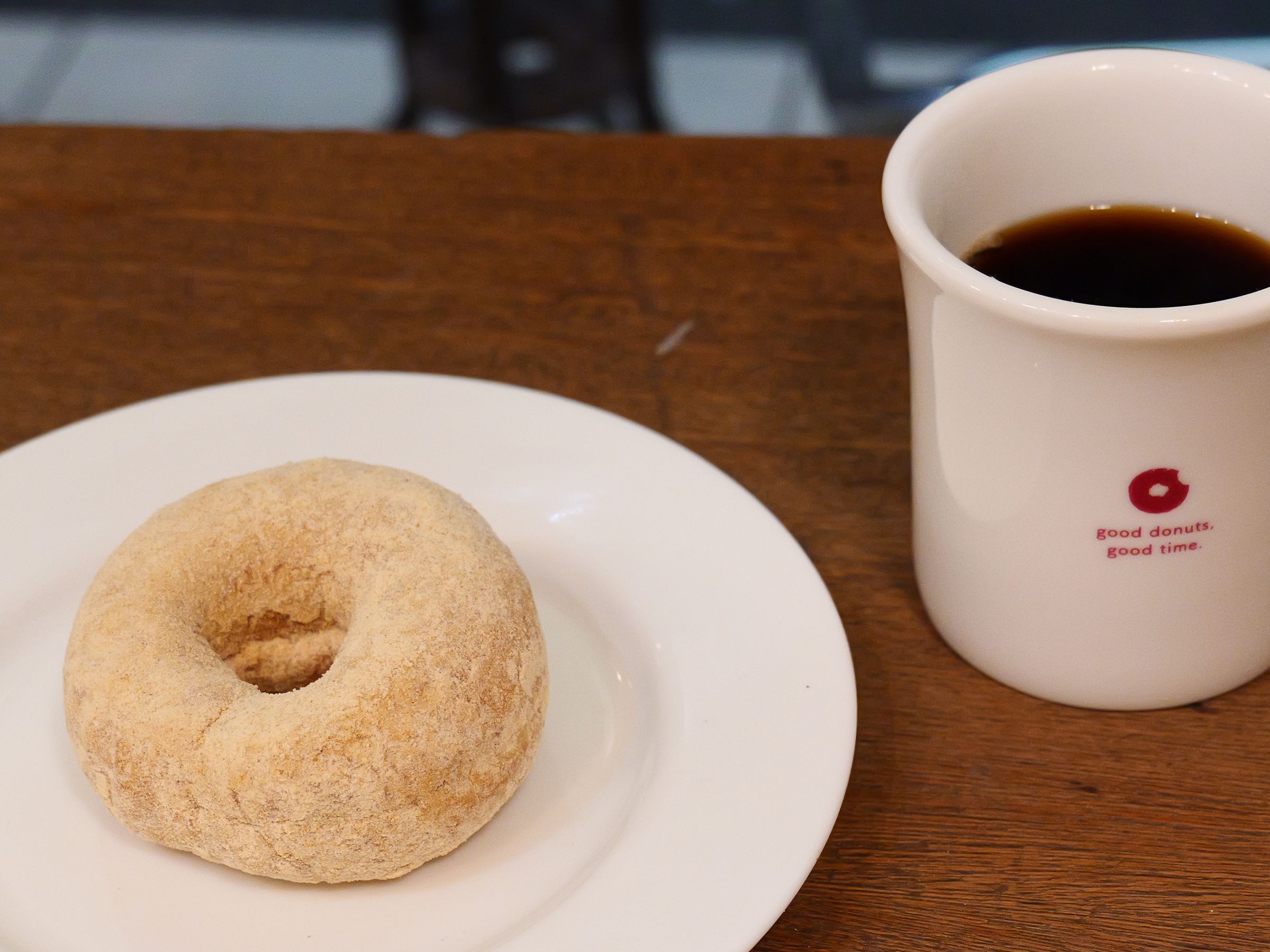 1階にもイートインスペースが設けられており、そこからはガラス越しにスタッフがドーナツを作っている様子を見ることができます。