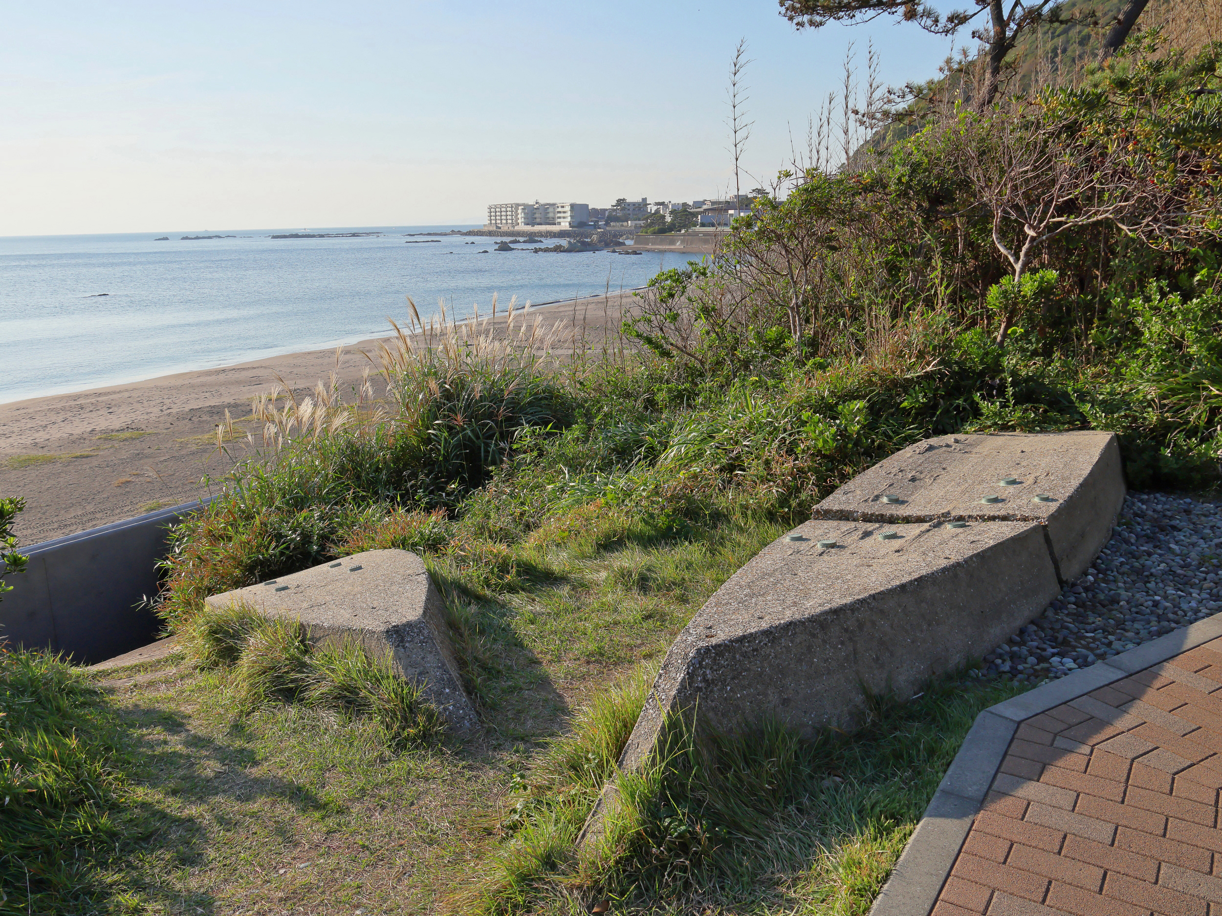 建築そのものが常設展です。その外周では木々を抜け海岸を望みながら数々の作品を見学できる自然の中で体感できるアートがあります。