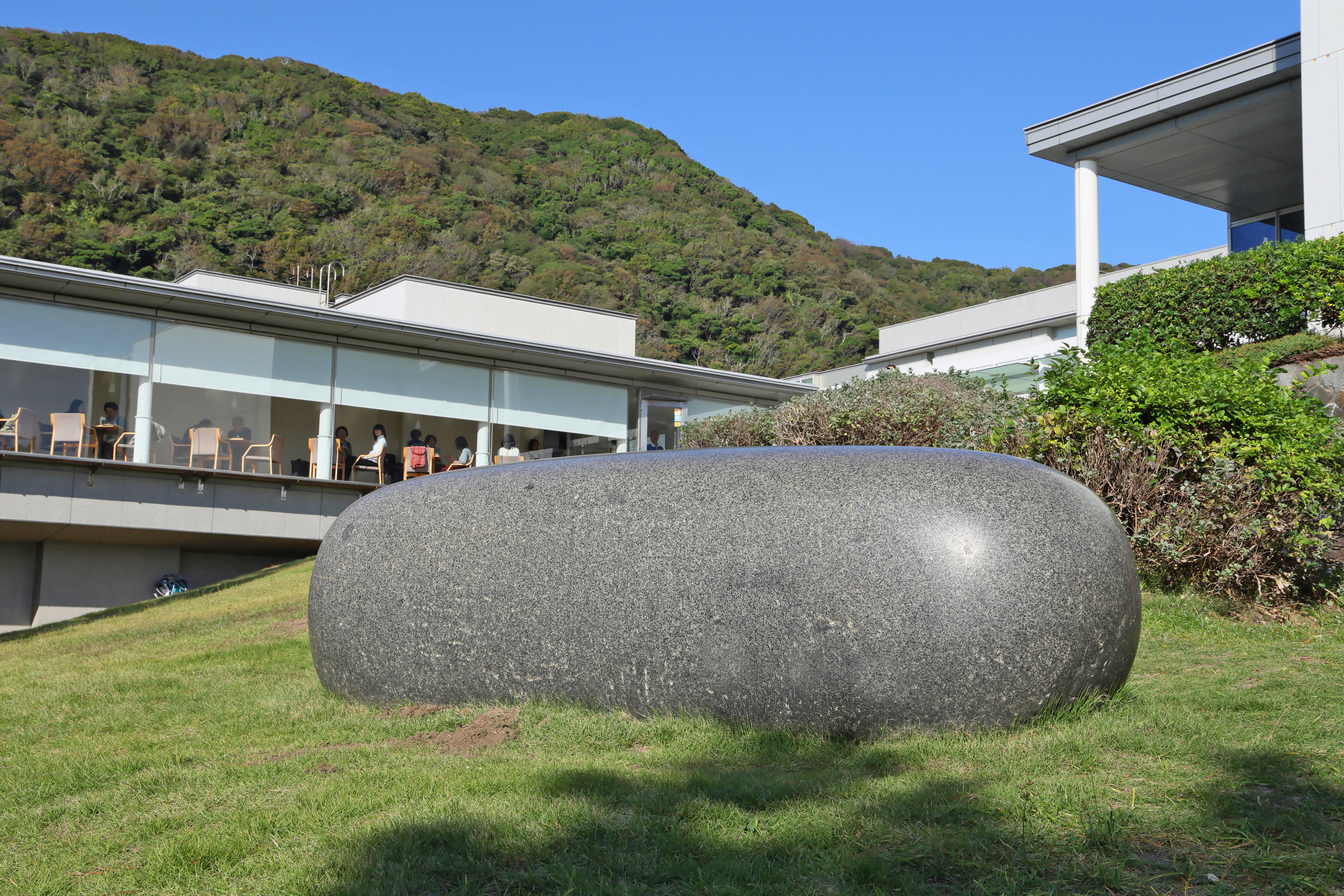 建築が生み出す存在感が、葉山の光を浴びて影を生み、庭園の彫刻たちが生き生きと動き出します。