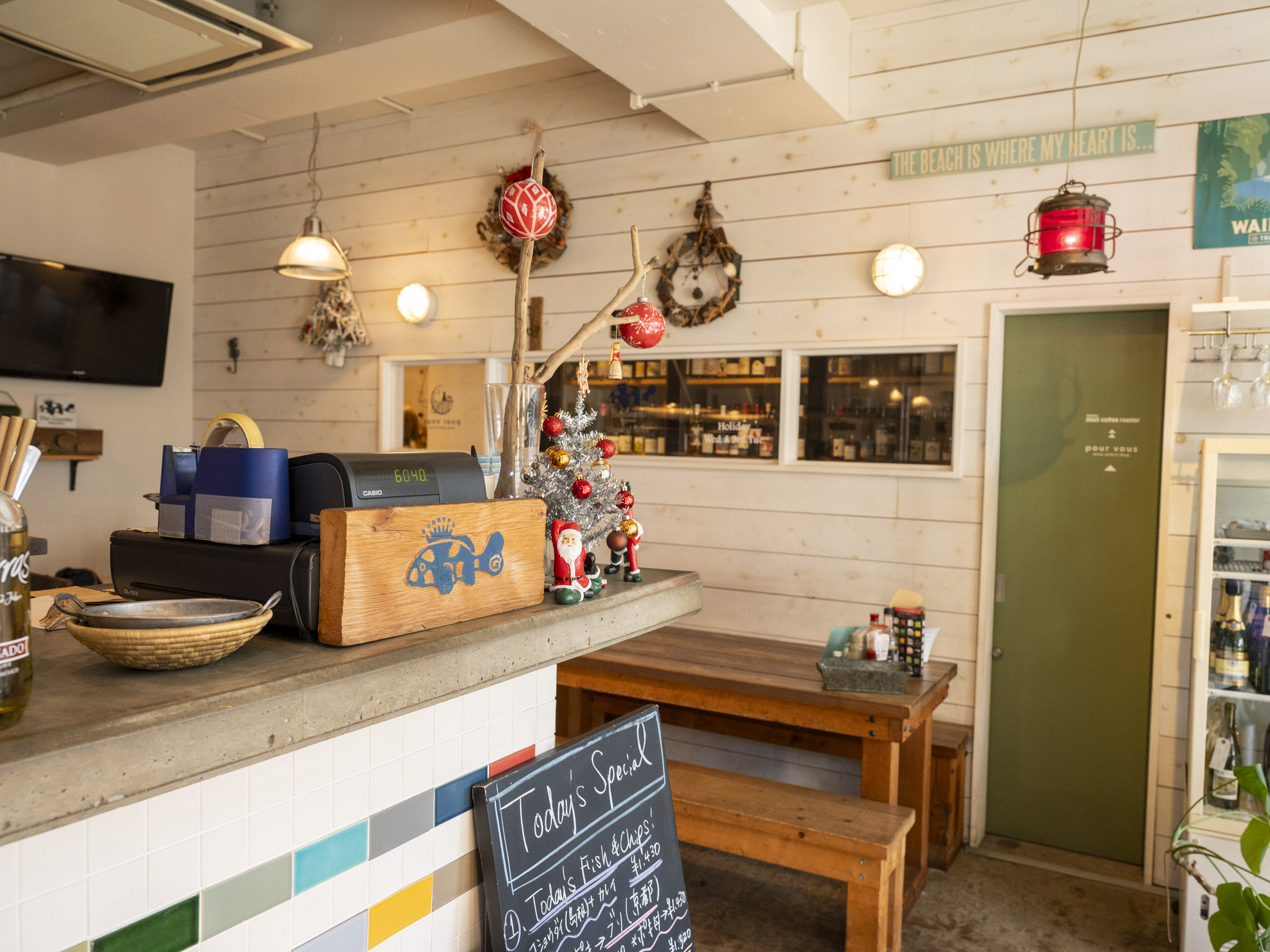 大学の水産学部で同級生だった宇式夫妻。海と旅行が好きで、将来はB&B(=宿泊と朝食をセットにした民宿)を運営したいとの思いから、それぞれ別の業界から星野リゾートに転職しました。7年間勤めた後、縁あって葉山に居を構え、まずは飲食店で葉山に根を張ろうと2012年6月にこのお店を開業。
