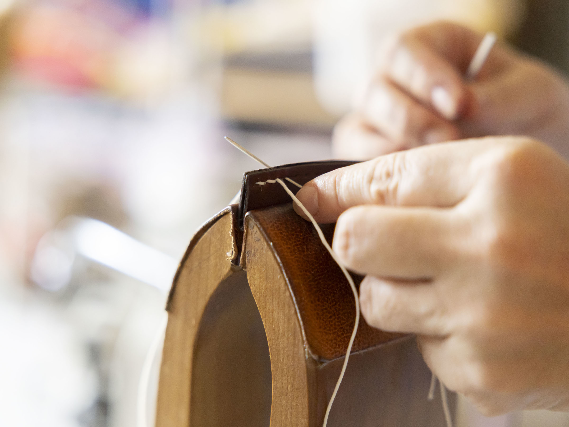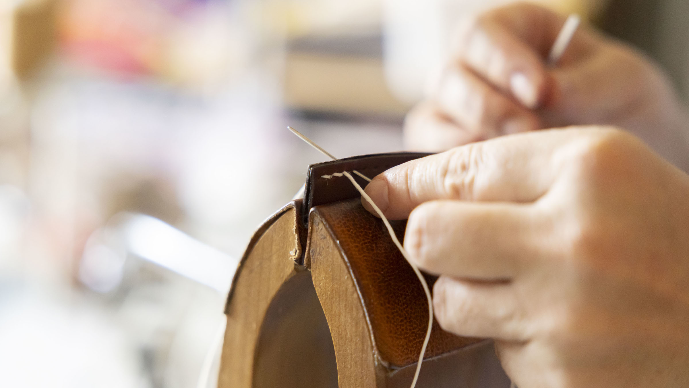 「布のバッグも、革製品もすべて手縫いです。ミシンだと最後の仕上げがどうしても荒くなってしまうんです。だからこそ丁寧に、仕上がりが美しくなるように手で縫い上げています。時間はかかりますけど、手間暇の中で面白いアイディアが浮かぶこともあるんですよ」