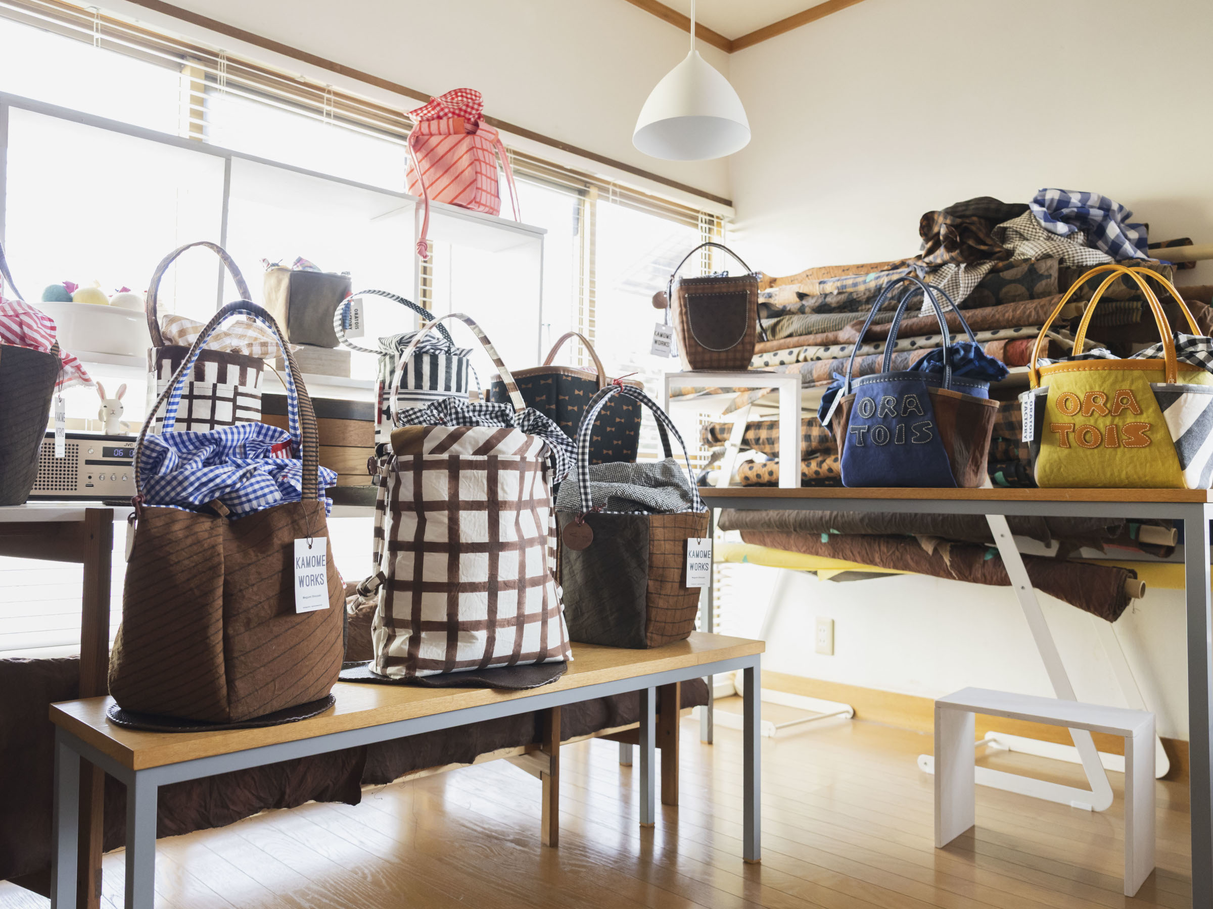 バッグブランド「kamome works」の塩崎めぐみさんもその一人。彼女がつくるバッグは、同じものが一つとしてない“一点もの”です。その時々で形や素材を変えながら生まれる作品には、自由な発想と細やかな手仕事が息づいています。