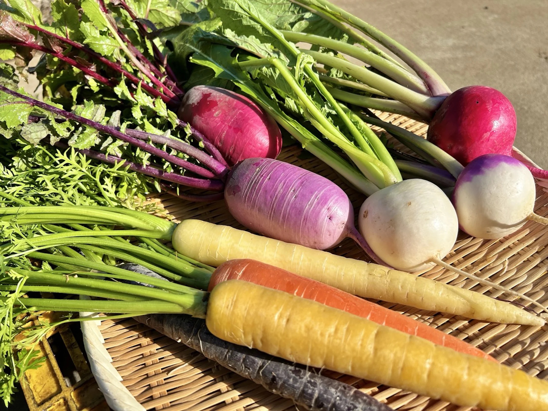 「今まで前ばかり見ていたけれど、後ろを振り返ってみよう」そう思い立ち、車で三浦半島を一周します。三方を海に囲まれ、広大な畑が広がる故郷の風景を、初めて“食の目線”で見つめ直しました。そこから、漁港に通い漁師の手伝いをしながら信頼関係を築き、農家を一軒一軒訪ね歩く日々が始まります。ある日、手にした大根を切った瞬間、あふれ出す瑞々しい水分に衝撃を受けました。