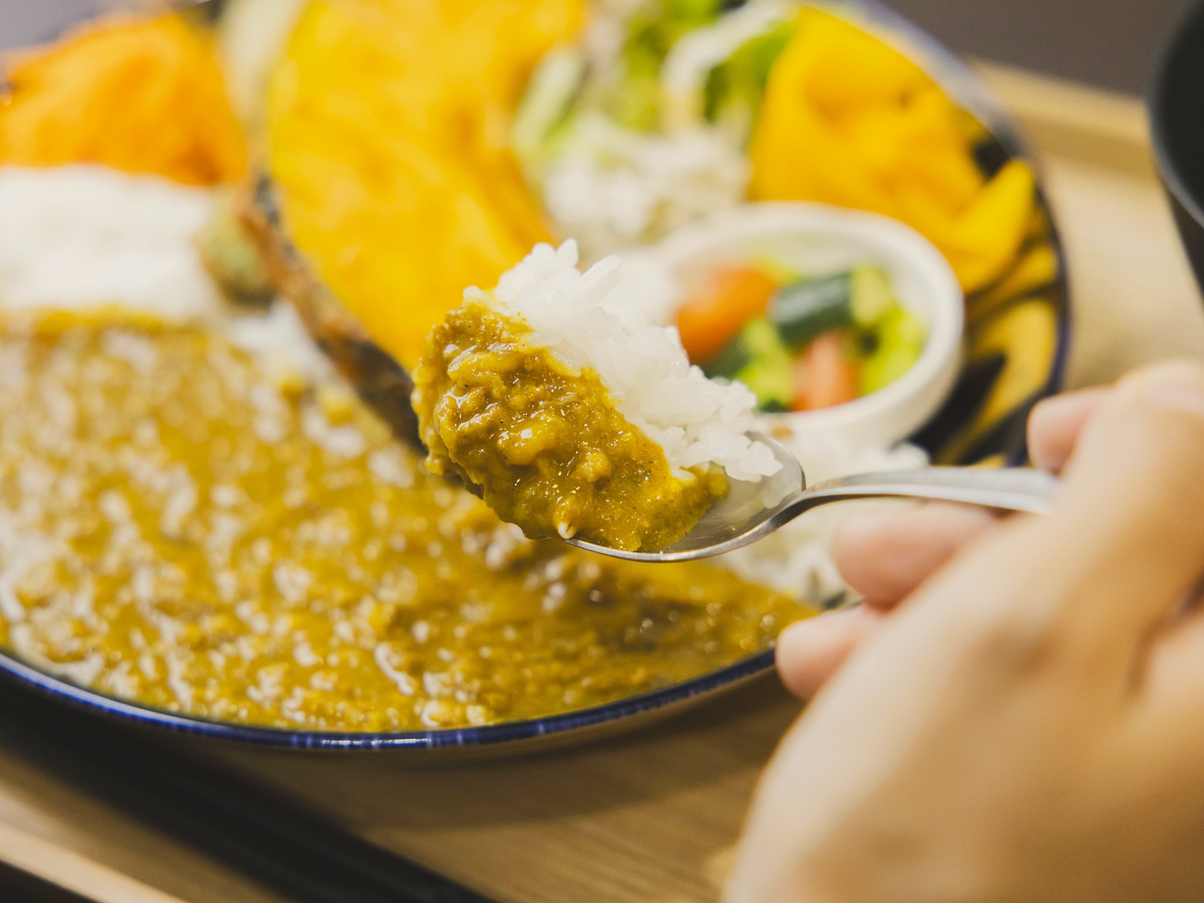 数日かけて丁寧に仕上げたカレーは、疲れた体にちょうどよい刺激を与えるスパイシーさ。彩り豊かな付け合わせと混ぜて食べてもおいしく、一皿で旬の恵みを存分にいただくことができます。