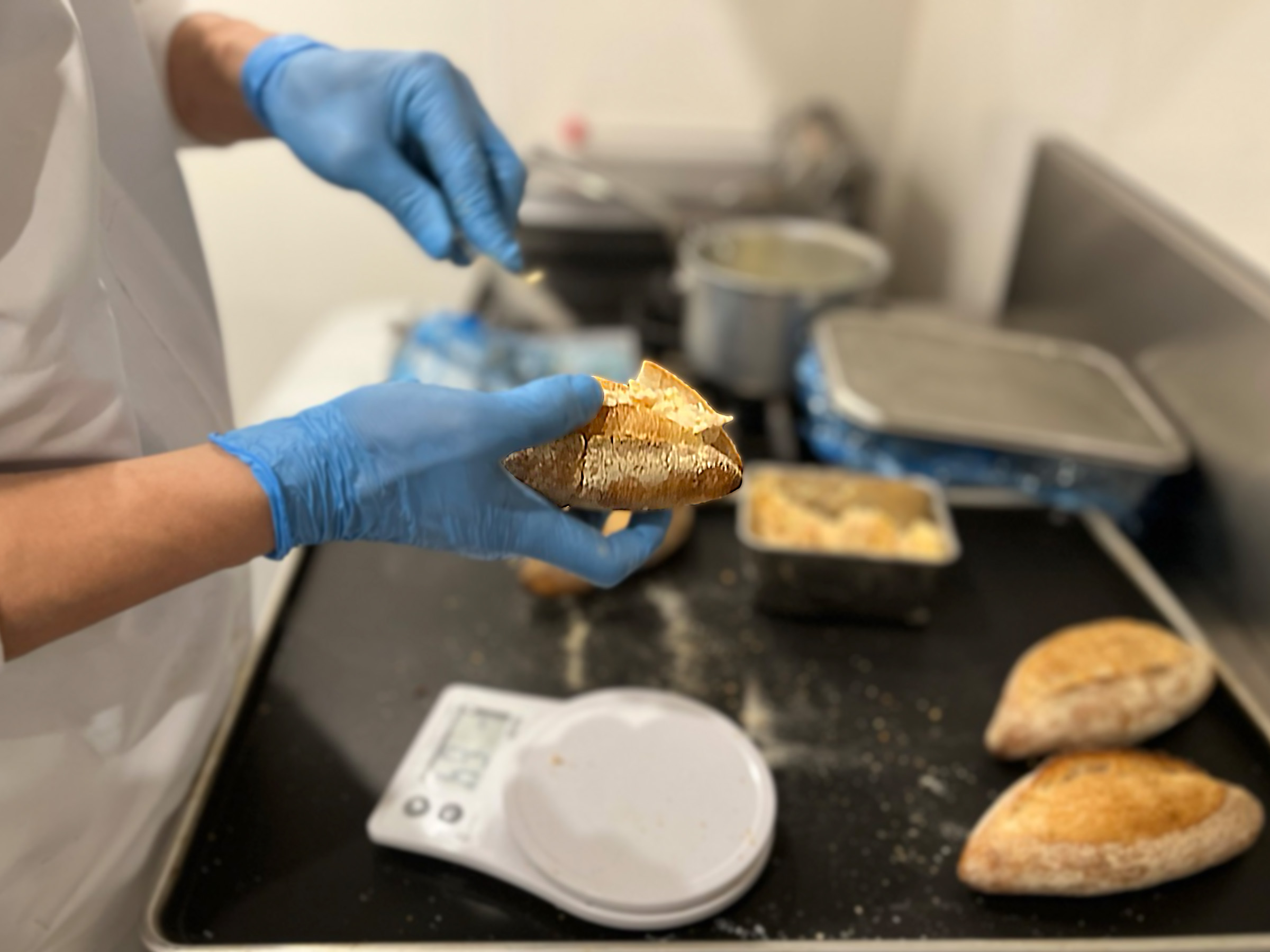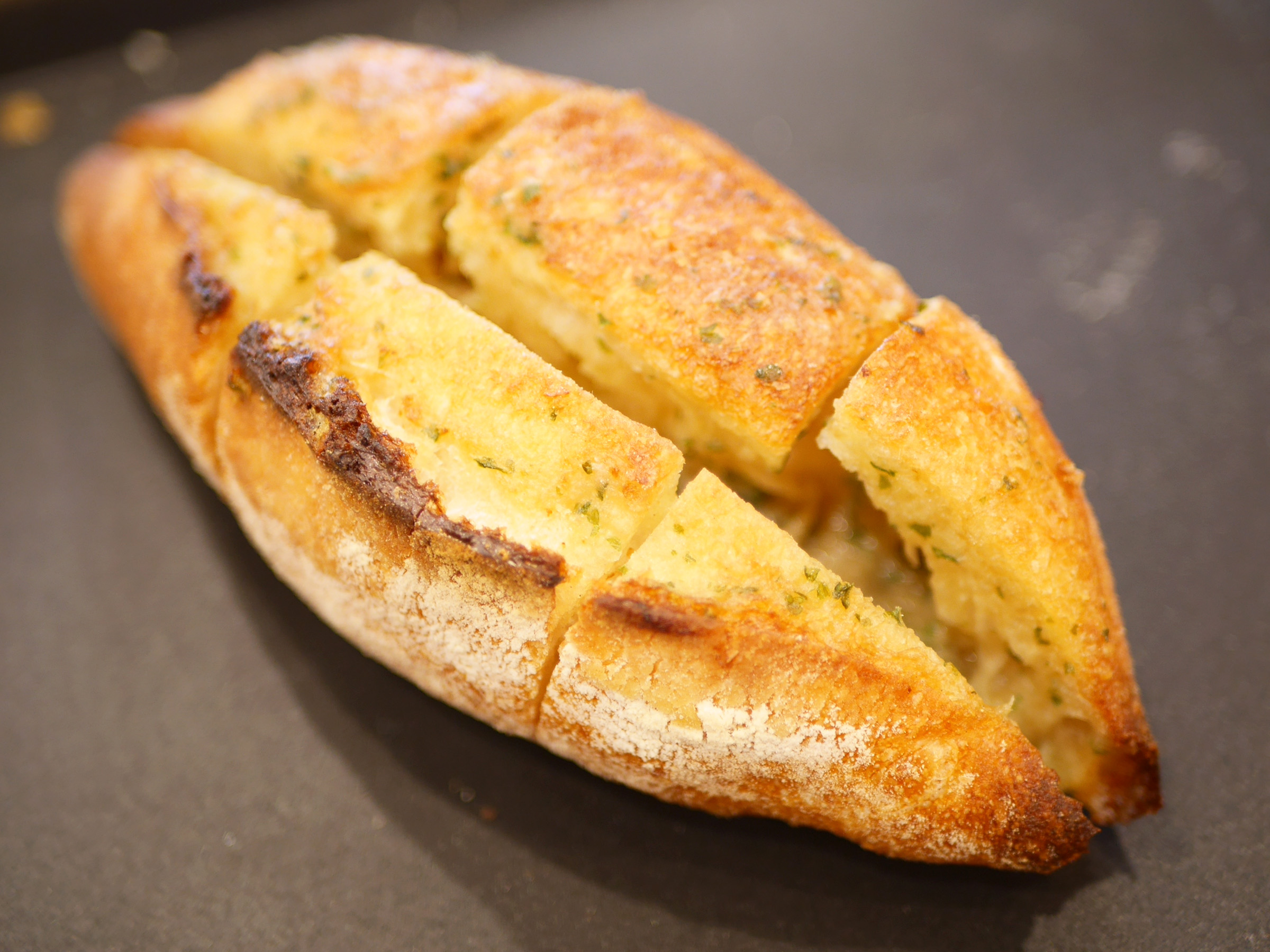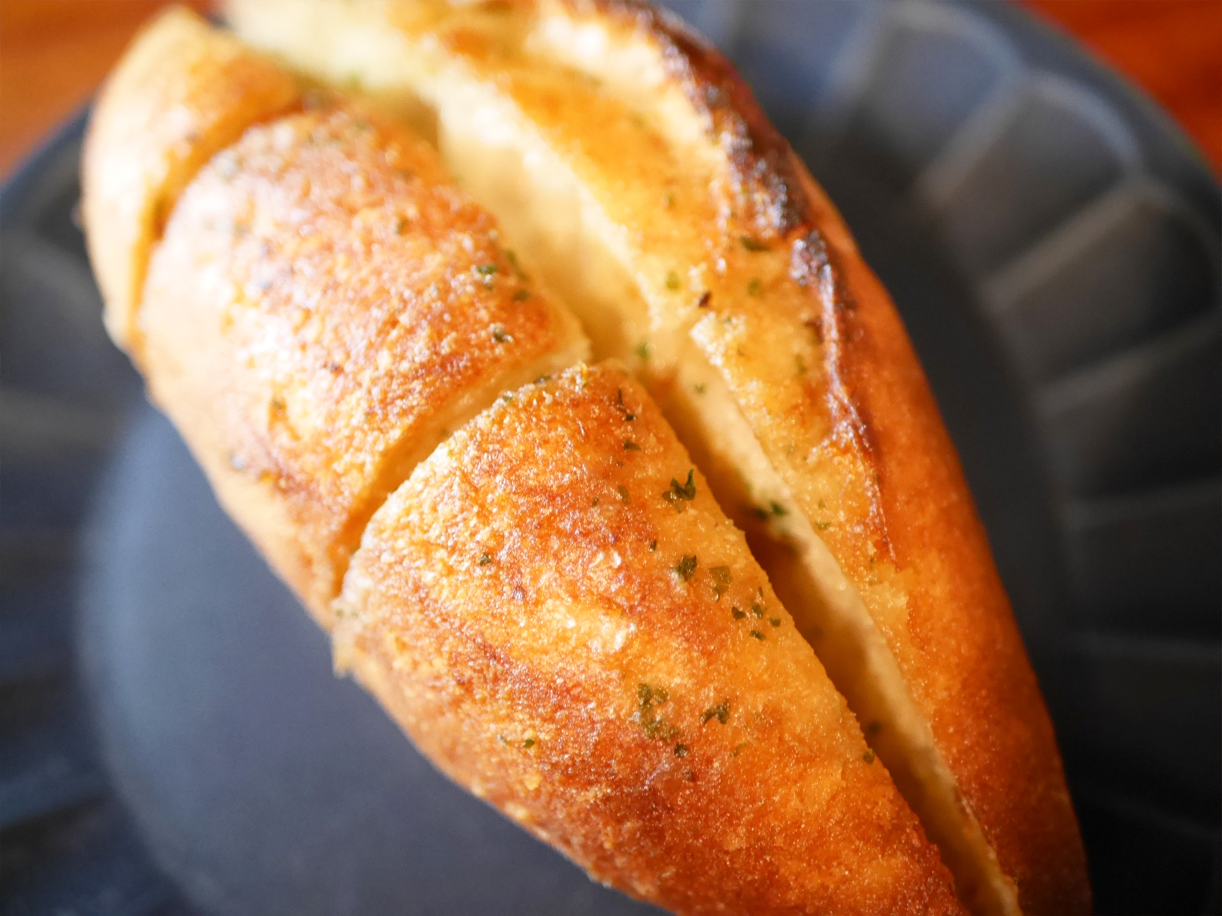 ニンニクを丁寧に煮込み、厳選したアンチョビとバターを合わせた自家製ペーストは、口に入れた瞬間ジュワッと広がり、塩気とコクが後を引きます。リベイクすれば香ばしさが増し、外皮のクラスト部の歯応えとバターが染みた中のクラム部のコントラストが楽しめます。