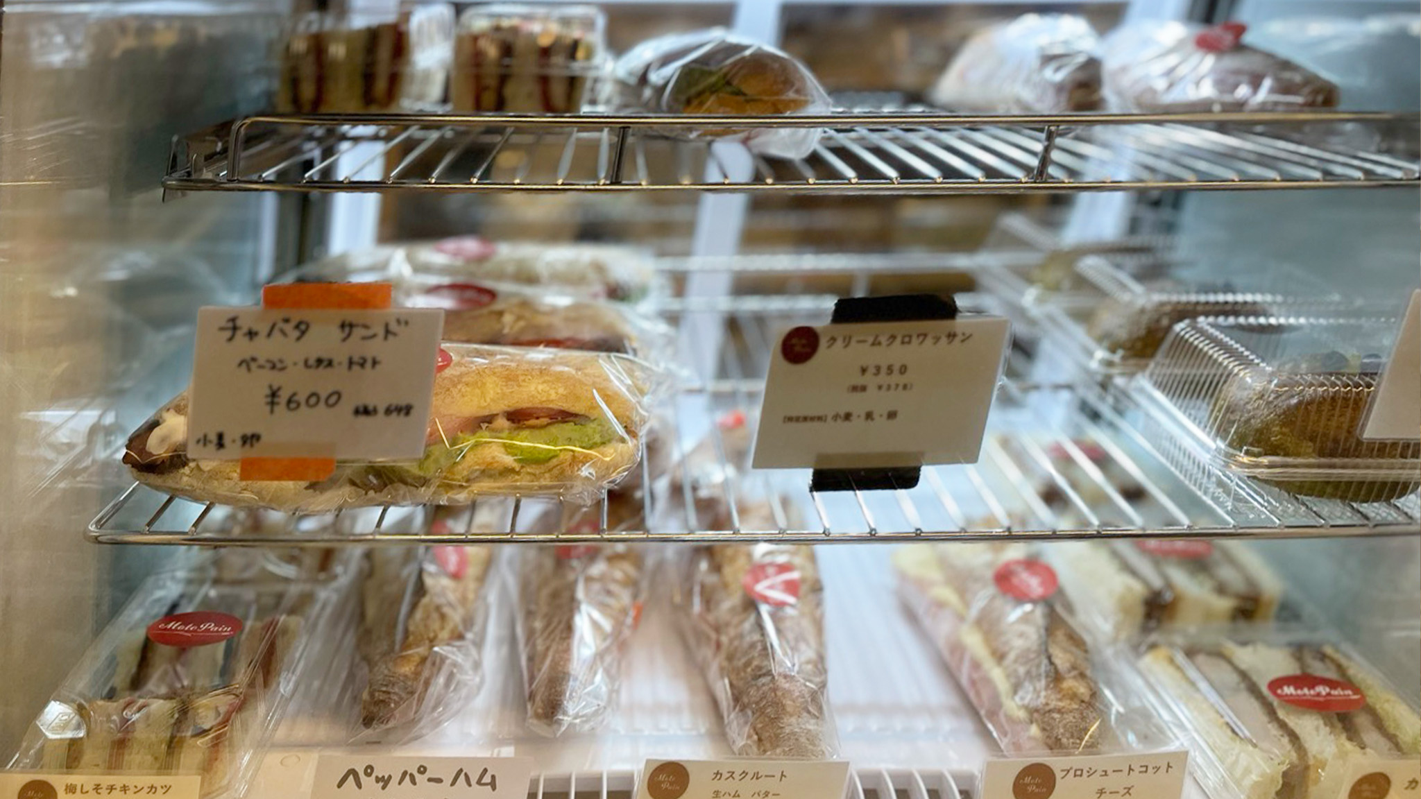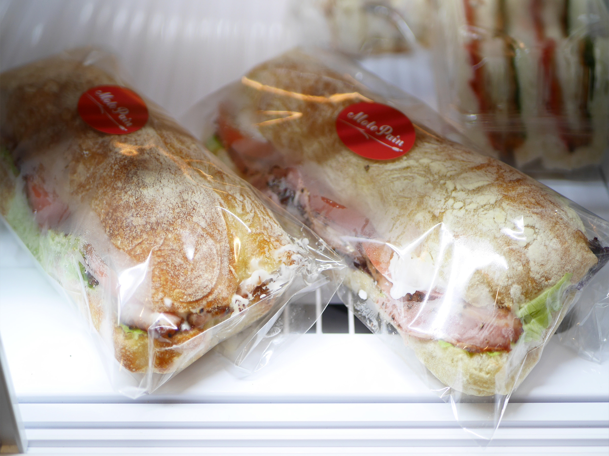 葉山「Moto Pain(モトパン)」の「チャバタサンド」(648円税込)と「クッペ アンチョビバター」(351円税込)は、それぞれの生地の特性を生かした惣菜パンです。