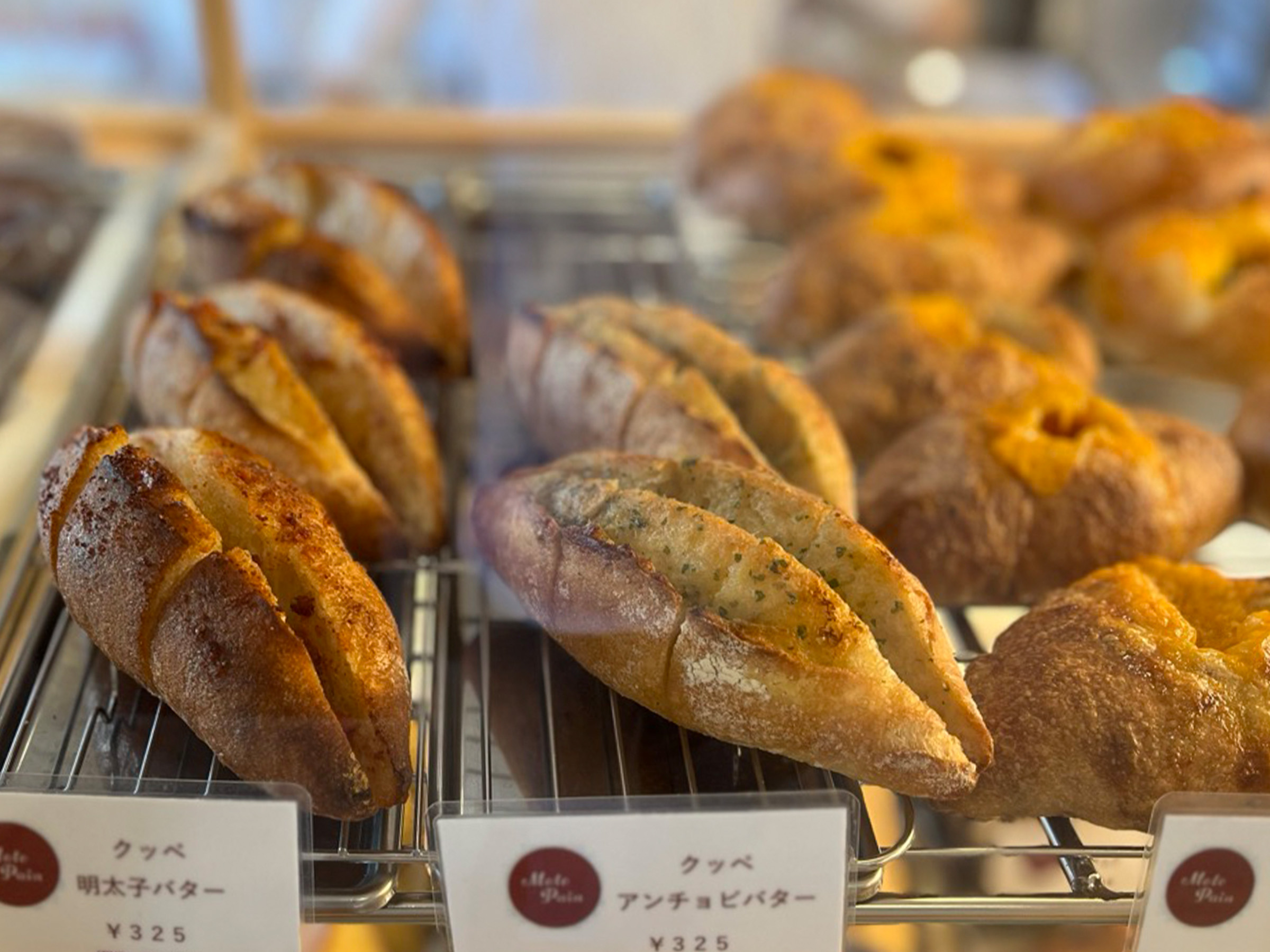一方、「クッペ アンチョビバター」は、看板バゲットと同じ自家製発酵種を使ったフランスパン生地。外は香ばしく、中はしっとりとした食感で、歯切れの良いチャバタサンドとは一味違い、噛むほどに旨みを感じます。