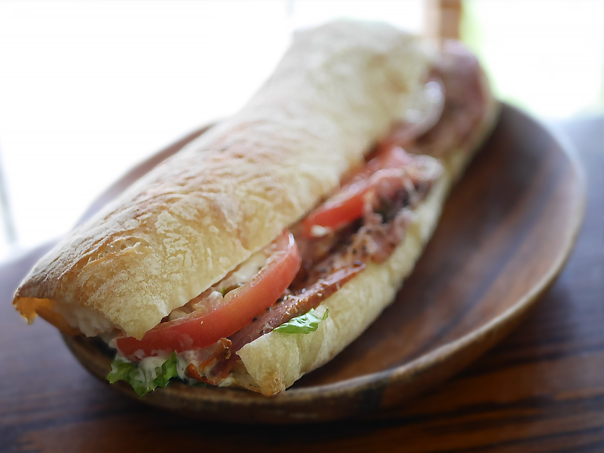 厚切りベーコンはブロックで仕入れ、一枚ずつ手切り。噛み応えとジューシーさを追求し、パンとの相性が最も引き立つ厚みに仕上げています。ベーコンの旨み、肉厚トマト、新鮮レタスのシャキシャキ感、レモンを使った自家製マヨネーズの爽やかさが絶妙に調和。