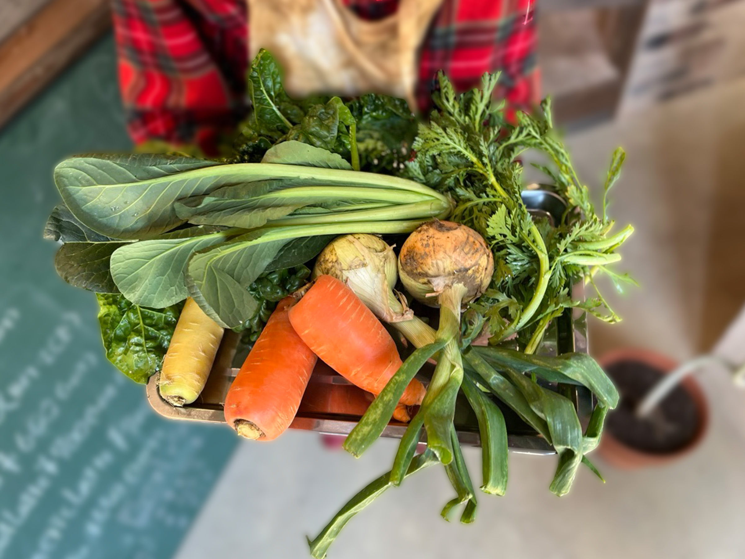 カフェの裏にある直売所では、気に入った野菜を購入することもできます。