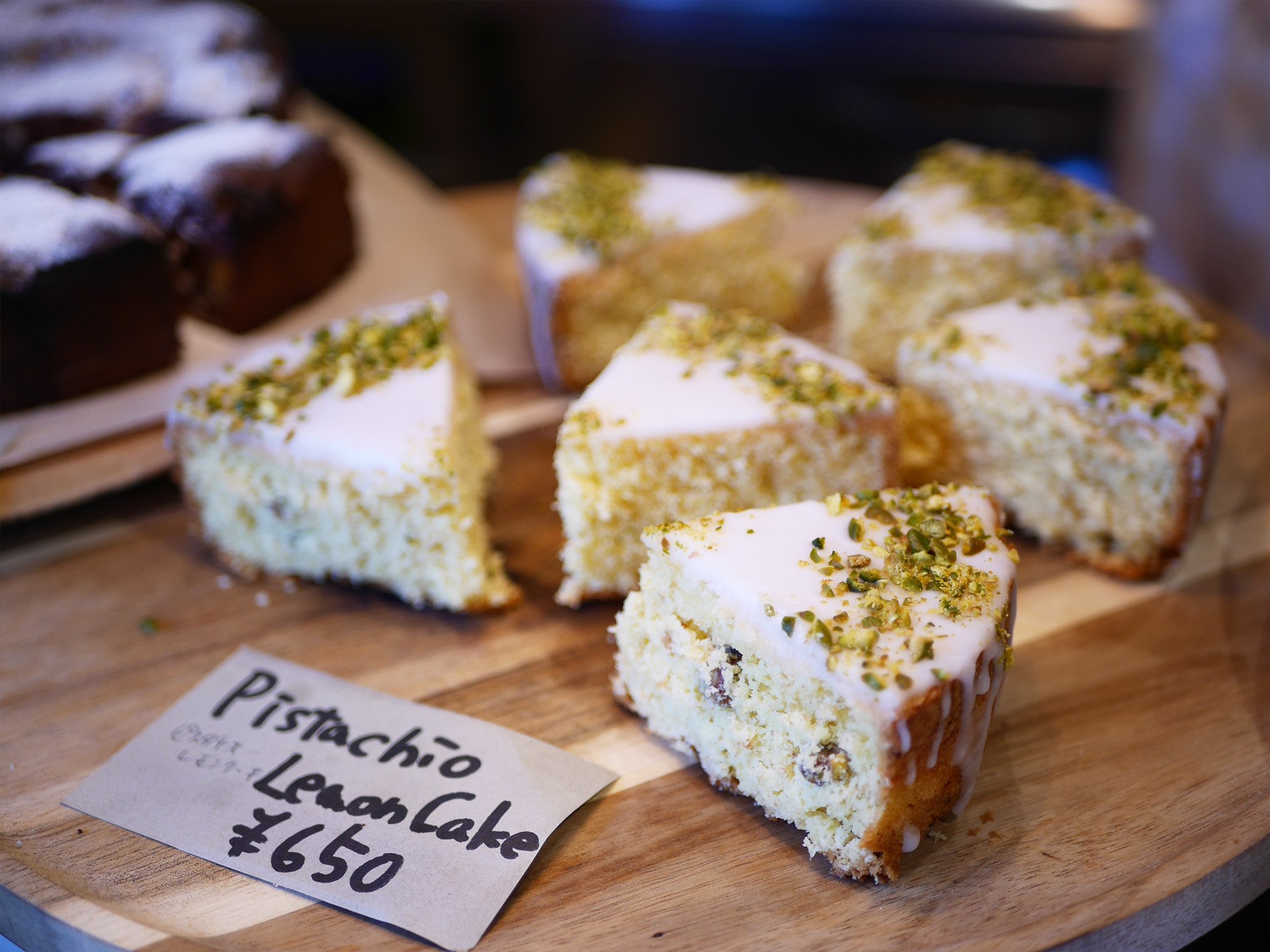 モーニングの後には、店主手作りのスイーツもおすすめ。ピスタチオレモンケーキやアメリカンクッキーは、コーヒーとの相性抜群です。ドリンクメニューも充実しており、葉山の「DARK ARTS COFFEE」の豆を使用したラテや、健康志向のビーツラテなどが楽しめます。