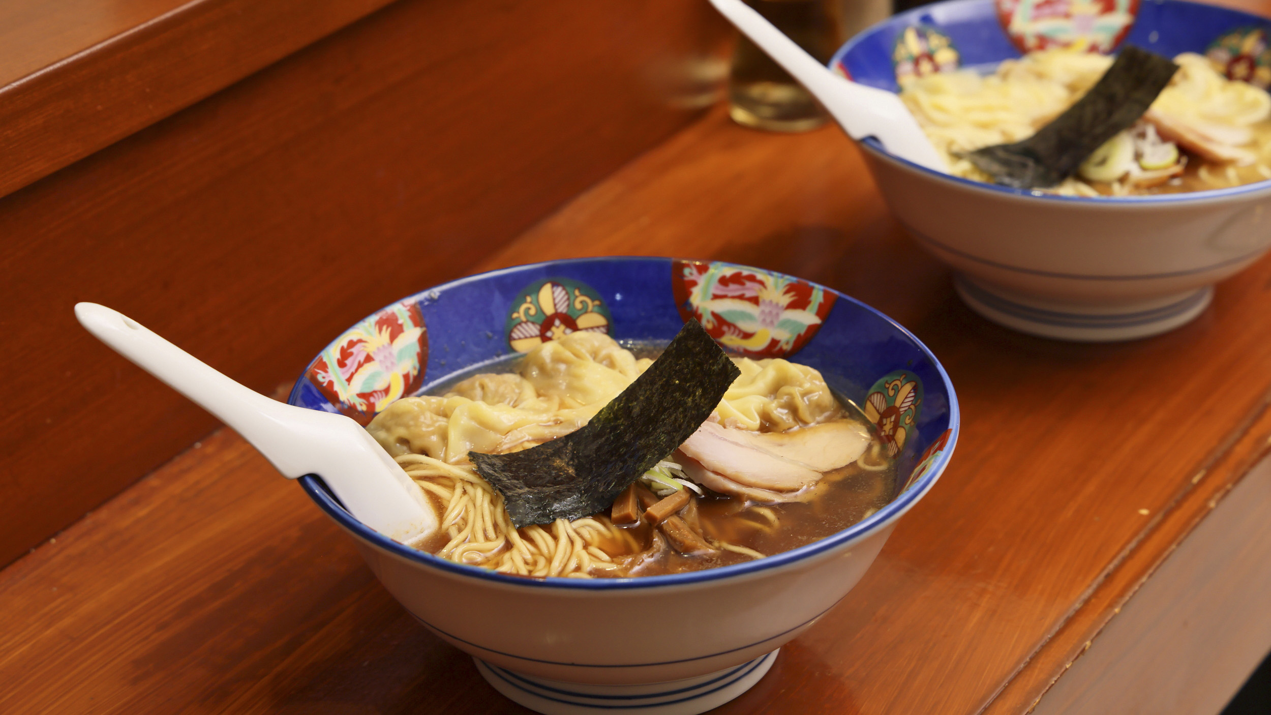 丁寧に盛り付けられた増田製麺のオリジナル麺は喉ごしがよく、そして生姜がバッチリ効いた肉餡が詰められた雲呑(わんたん)が満足度を高めます。