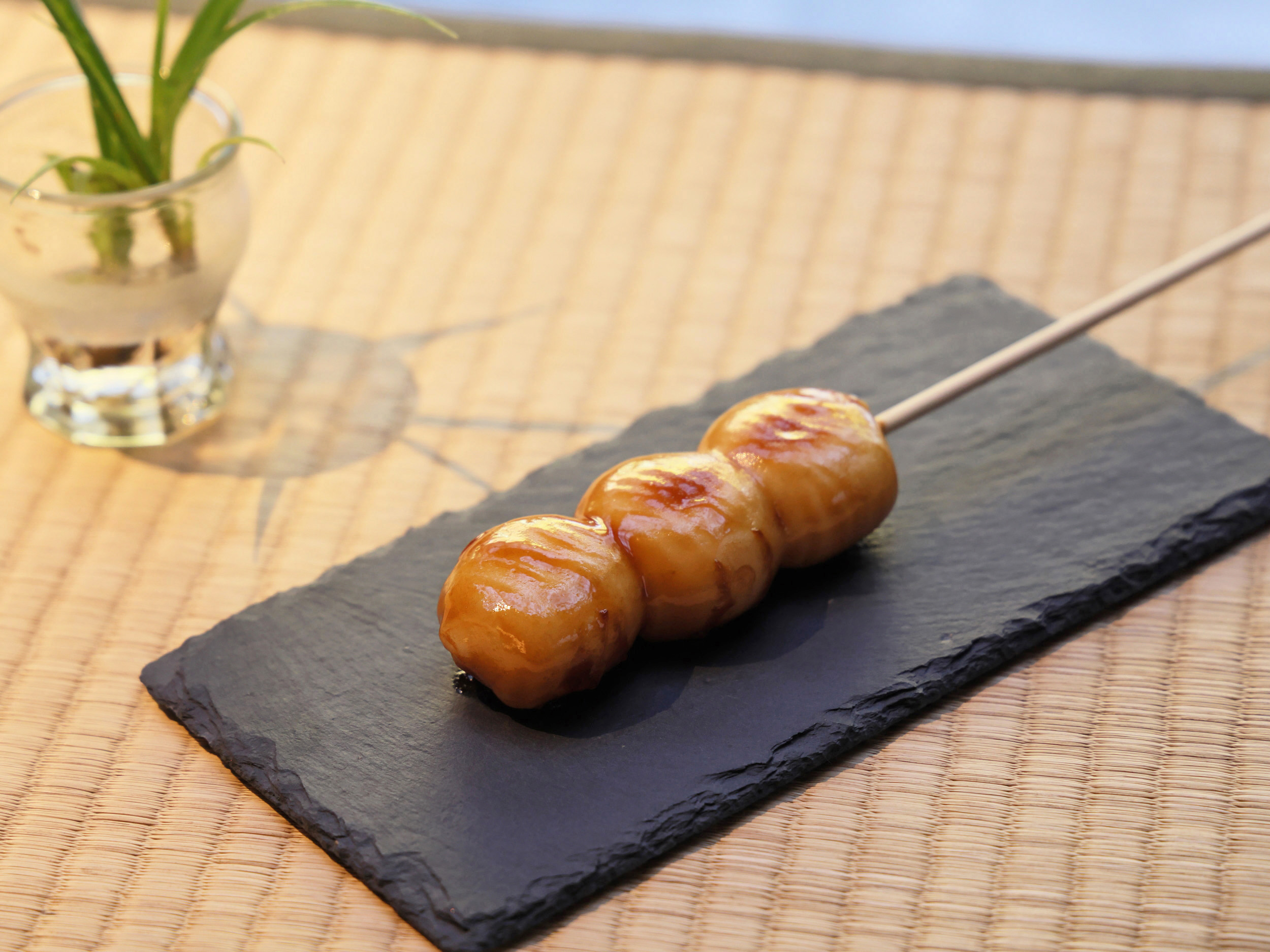 看板メニューは「三福(みつふく)だんご」。3つの願いが込められているという、焼き立てのだんごをいただきましょう。
