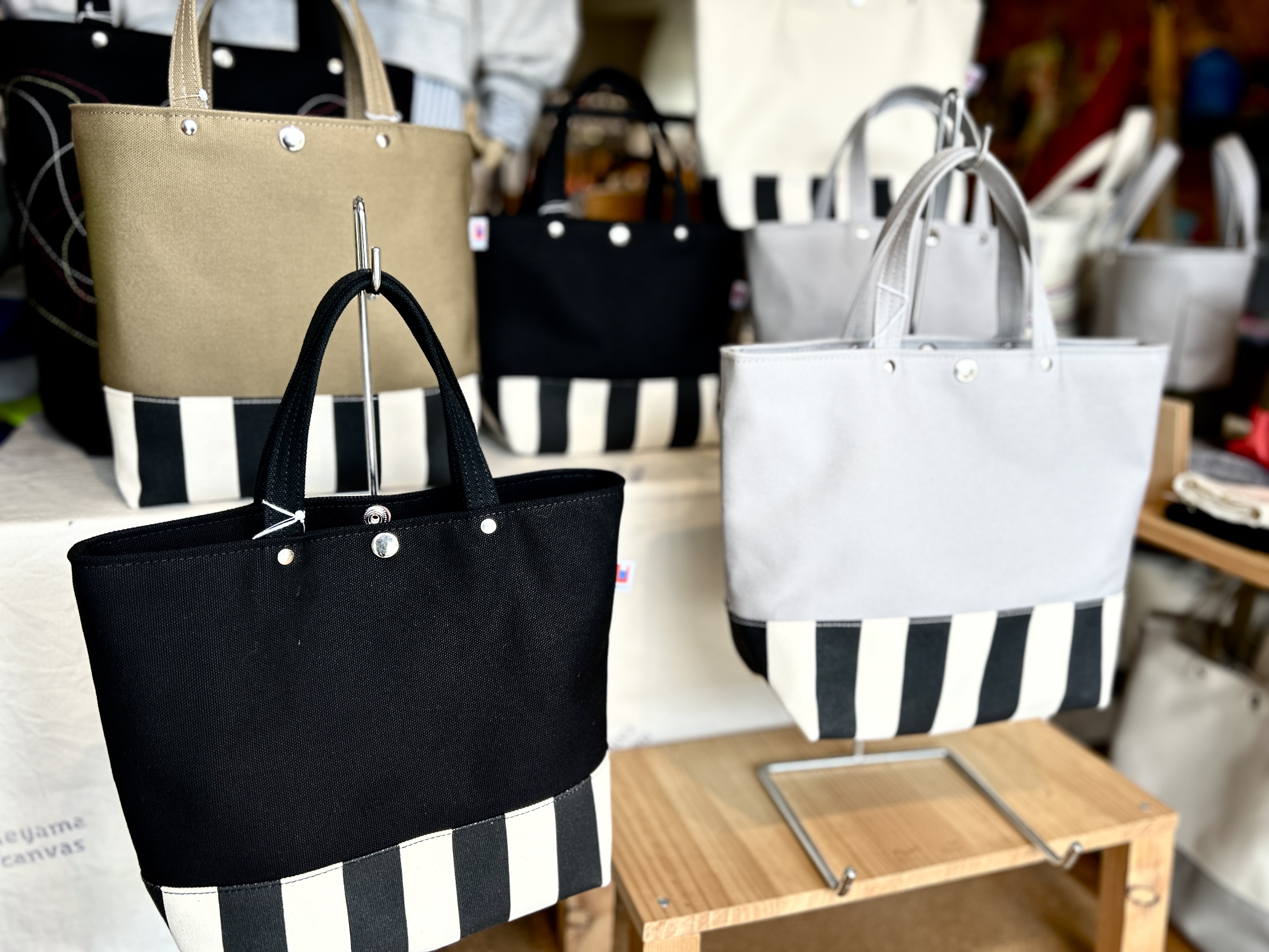ueyama canvasのバッグは、シンプルなデザインと豊富なカラーが魅力。