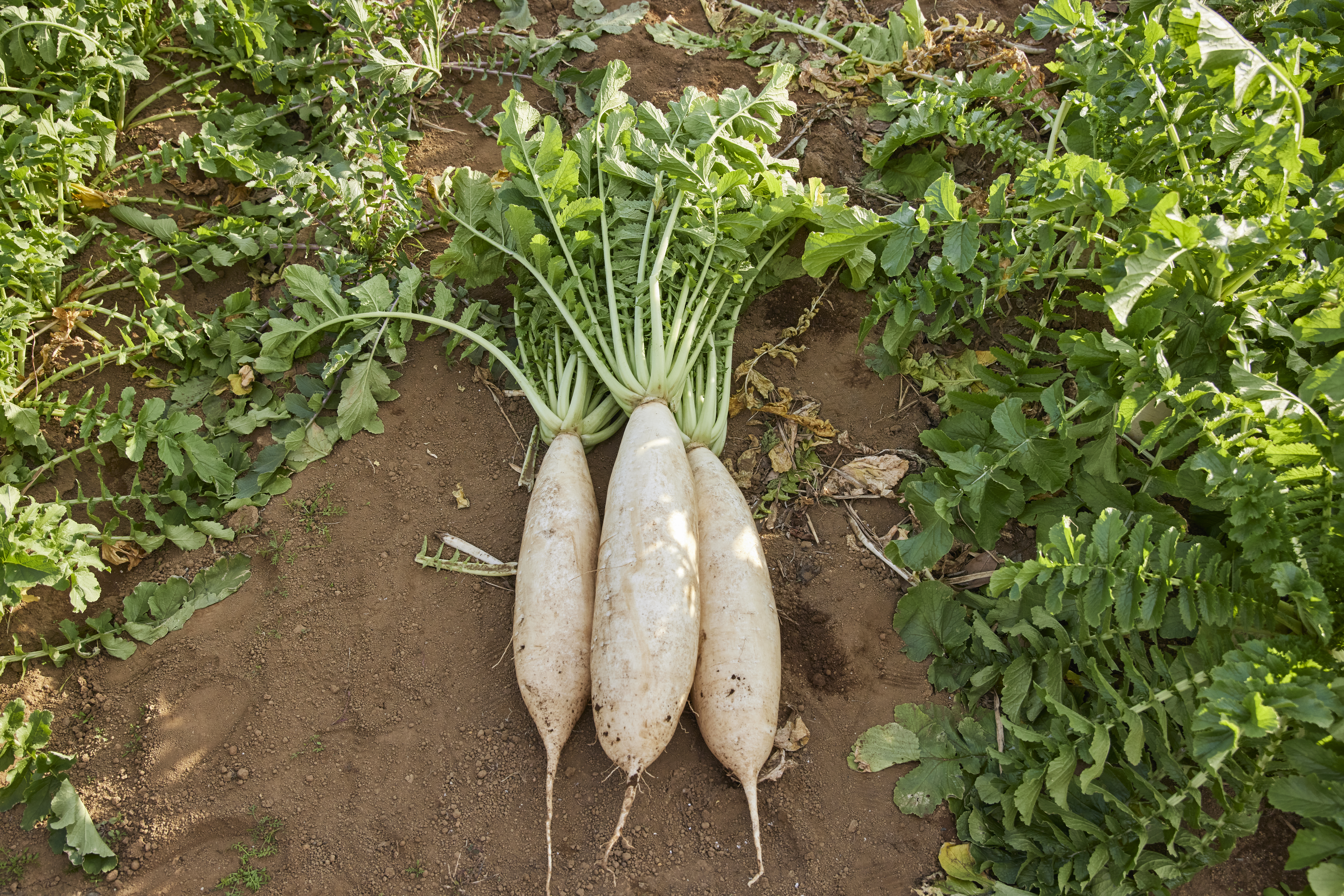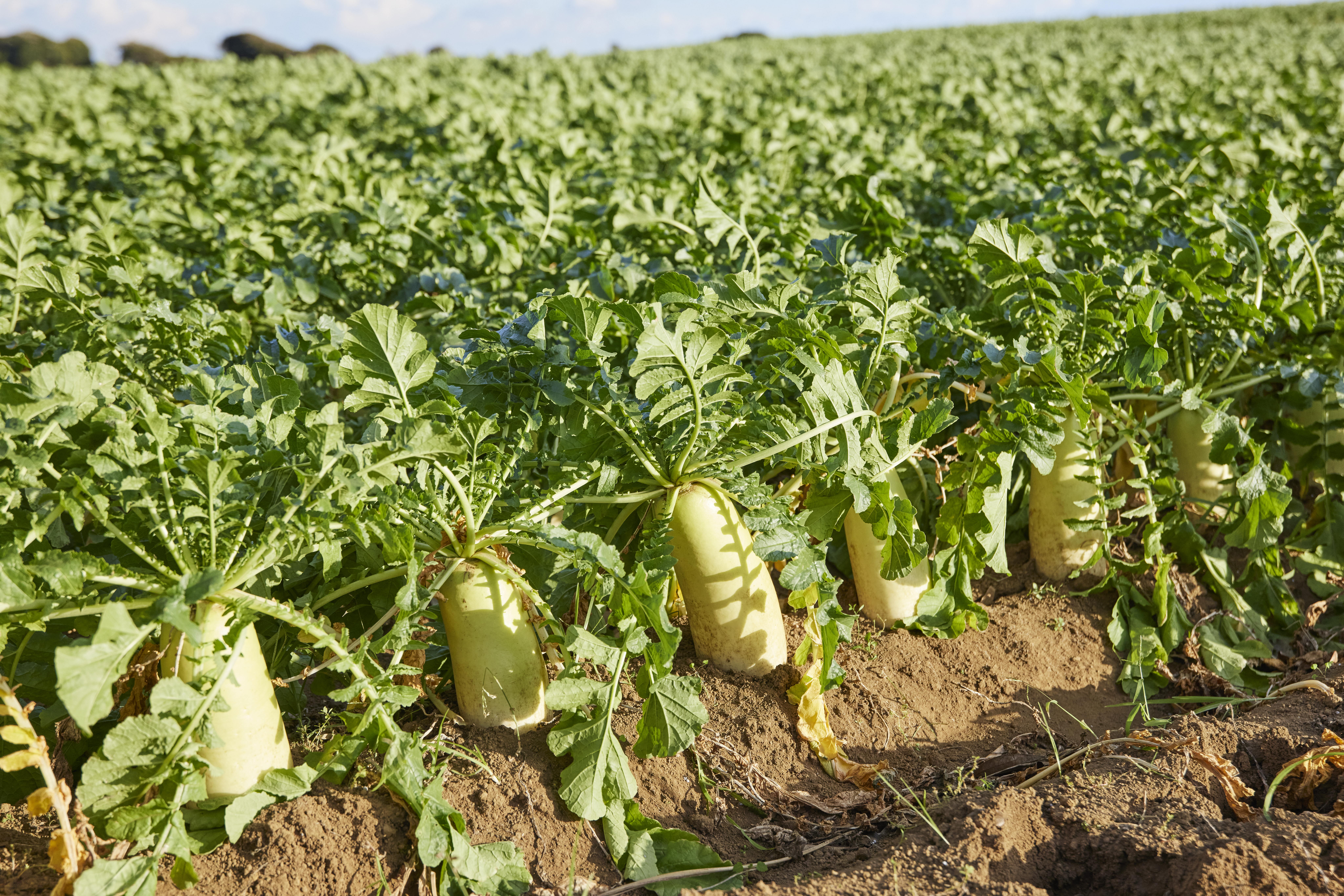 「洗うとよく分かりますが、肌が綺麗で、根もまっすぐ。良い大根がたくさん収穫できています。」