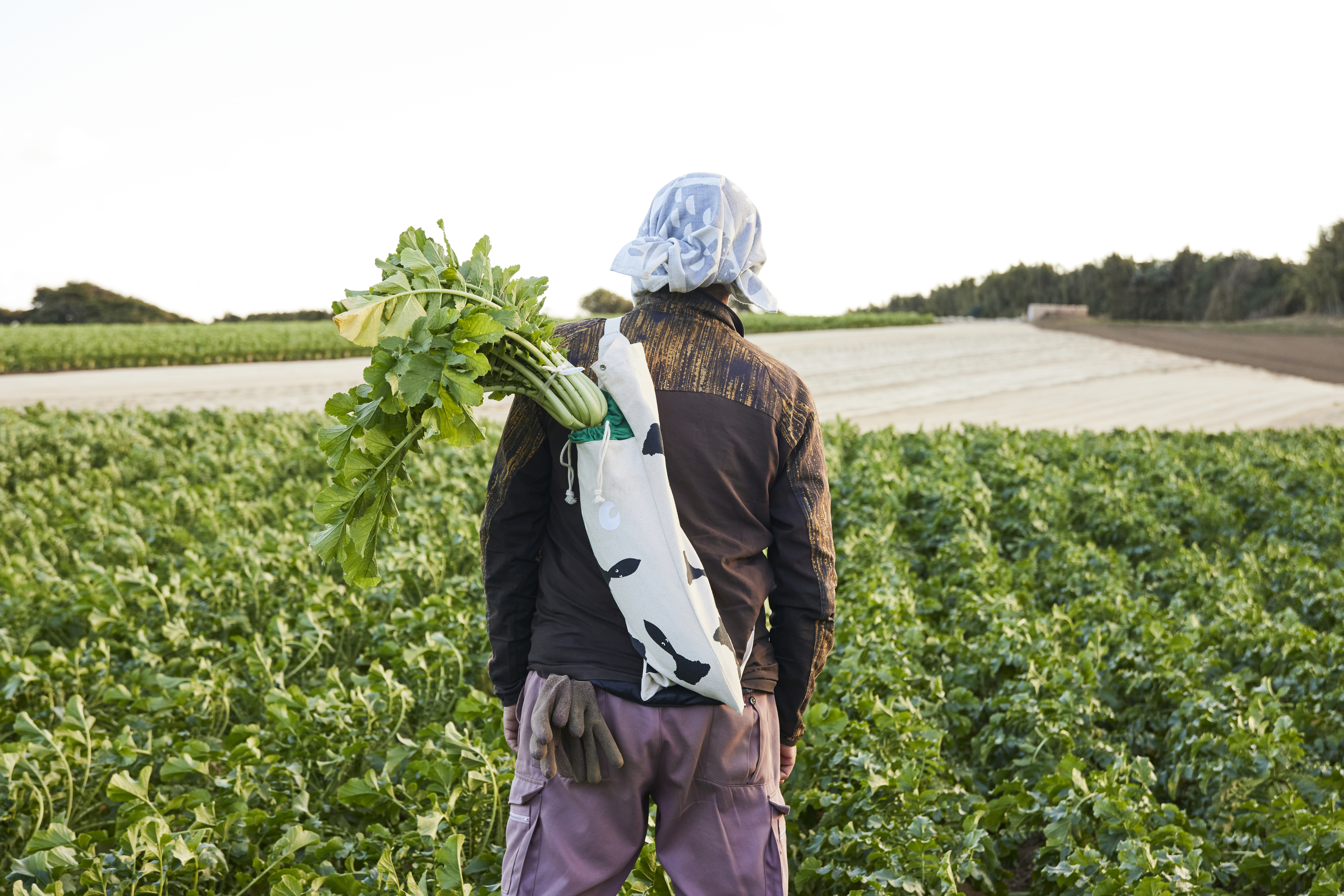 取材の最後に、やまきちファームで収穫したばかりの三浦大根を、実際にバッグに入れてみました。 本物の大根を入れるのは、実はこの日が初めて。