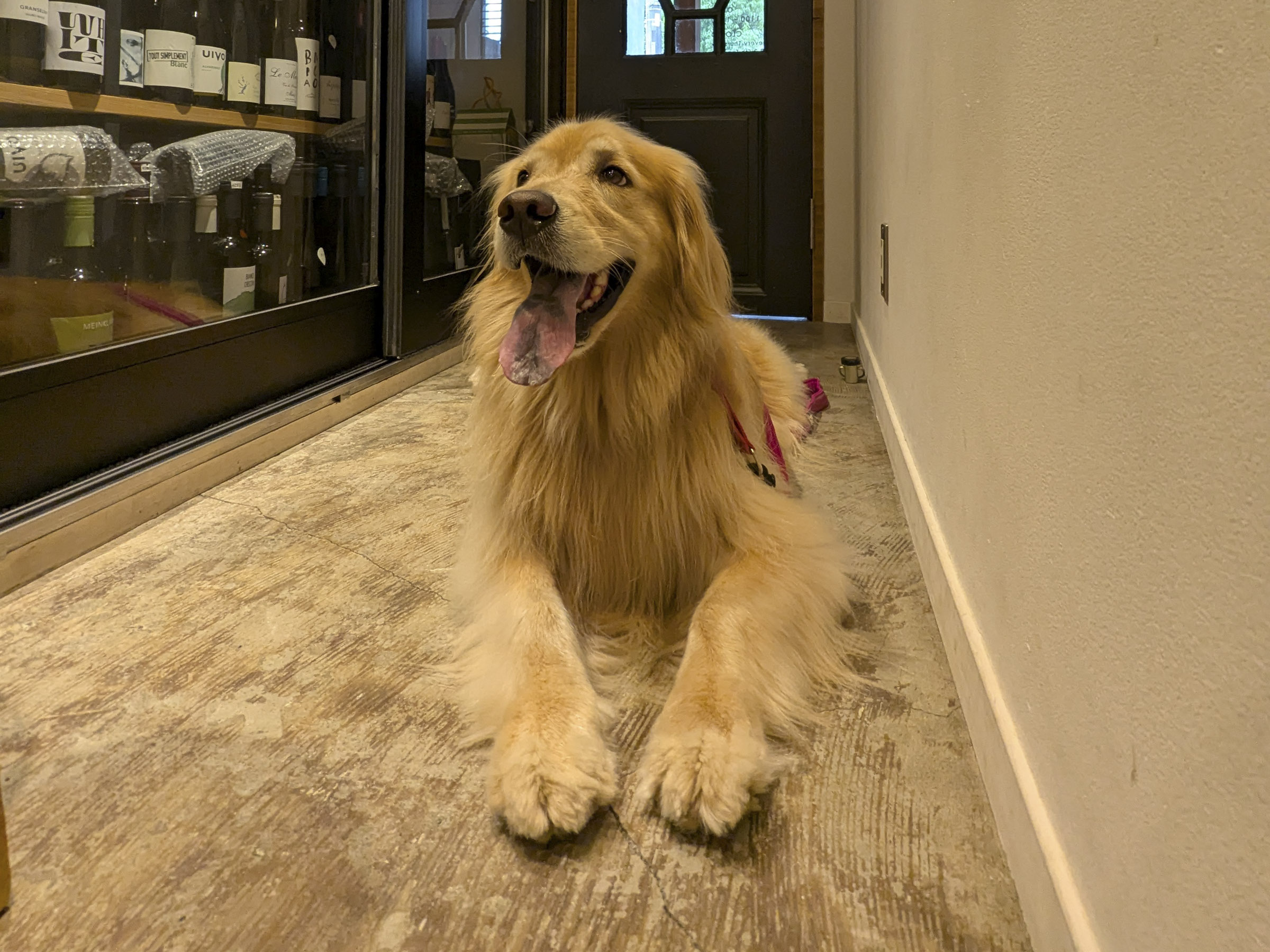 運が良ければ、看板犬のゴールデンレトリバー「カラ」が出迎えてくれることも。ペット連れのお客様も多く訪れます。「散歩の帰りに犬と一緒に寄ってくださる方も多いんです」と、地域に根ざした温かい雰囲気が魅力です。