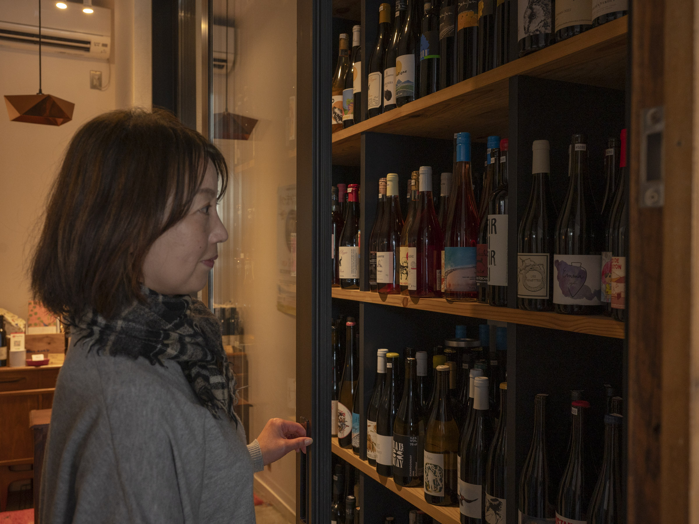 ラベルに描かれたオオカミが印象的なこのワインを取り出しながら、店主・金井麻衣子さんは「このお店に犬がいるからか、オオカミのラベルも好きなんです」とにこやかに話します。