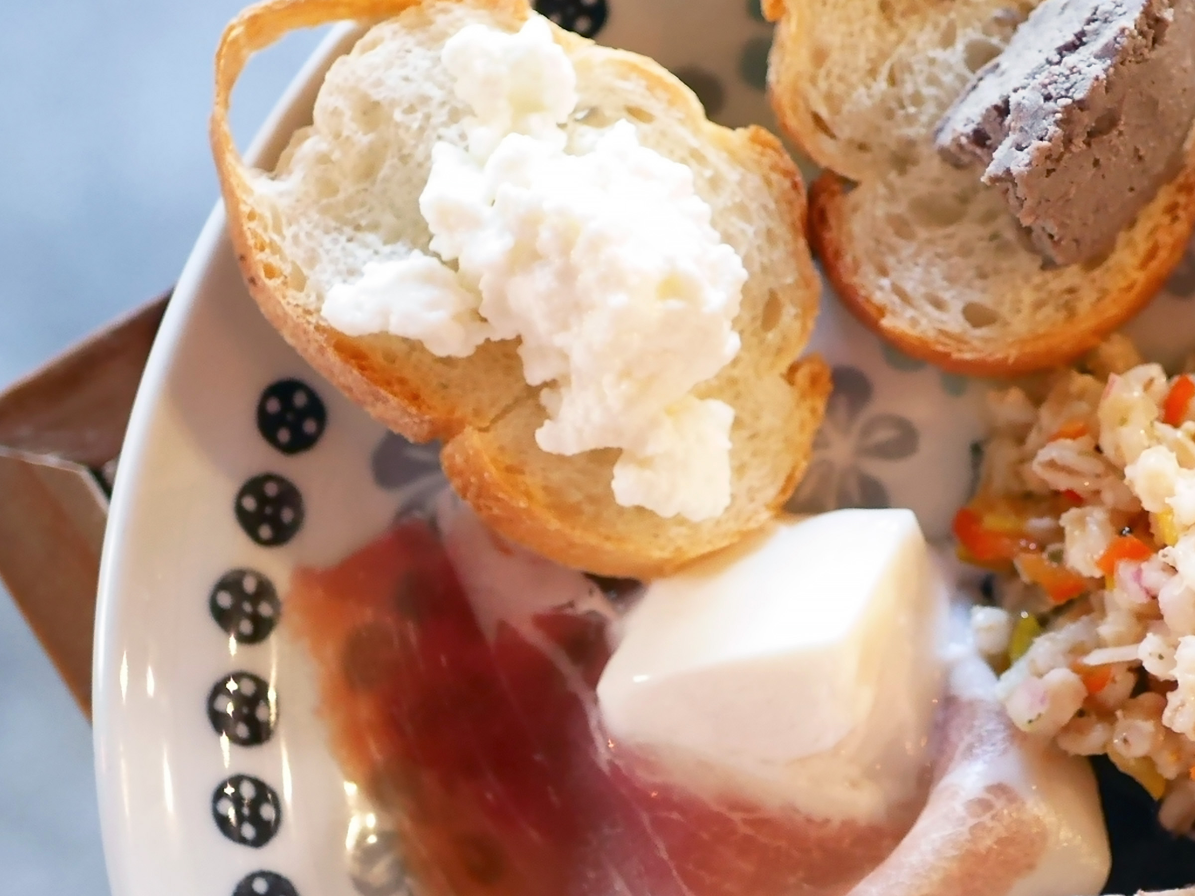 生ハムと合わせたモッツァレラチーズはむっちりとした弾力、広がるミルキーなコクと甘みが、鮮度感ある味わいです。リコッタチーズはふわっと軽やかで、こちらも口の中に優しいミルクの印象的な風味を残します。バゲットと合わせれば、より一層引き立つ味わいに。