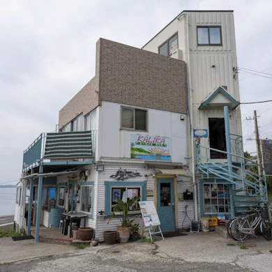 YRP野比駅から徒歩10分、国道134号線沿いを南下していくと見えてくる海沿いのお店が目印です。ワンちゃん連れもOKなお庭の席もあり、海が一望できます。ロケーションの良さに映画のロケやテレビ番組の取材も多いのも頷けます。