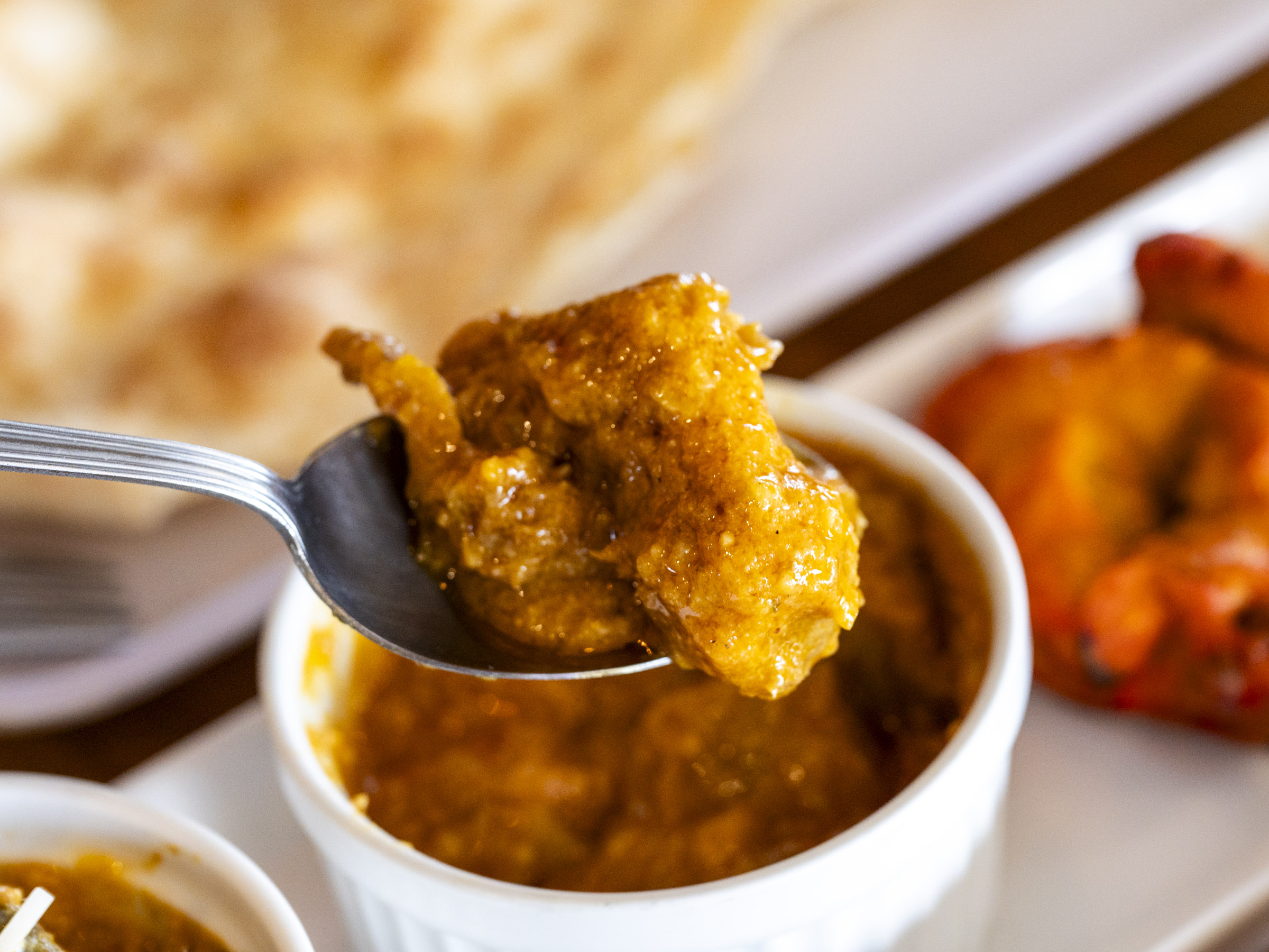 ランチメニューは、チキン、帆立、牡蠣、牛すじなど、豊富な選択肢がある「ランチカレーメニュー」(950円〜)のほか、タンドリーチキン・2種のカレー・ラッシーなどドリンクがセットになった「スペシャルカレーランチメニュー」(1,600円)も。一番人気の「牛すじ」はしっかり煮込まれた牛すじがプリプリで食べ応えたっぷりです。