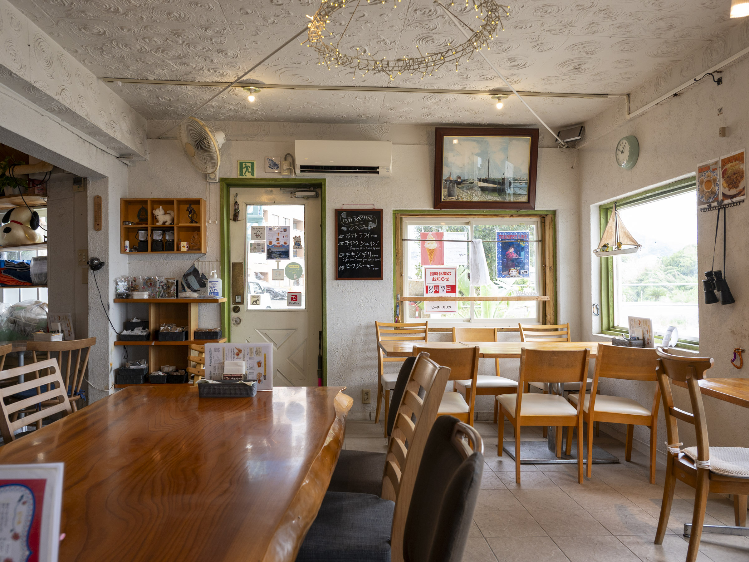 YRP野比駅から徒歩10分、国道134号線沿いを南下していくと見えてくる海沿いのお店が目印です。ワンちゃん連れもOKなお庭の席もあり、海が一望できます。ロケーションの良さに映画のロケやテレビ番組の取材も多いのも頷けます。
