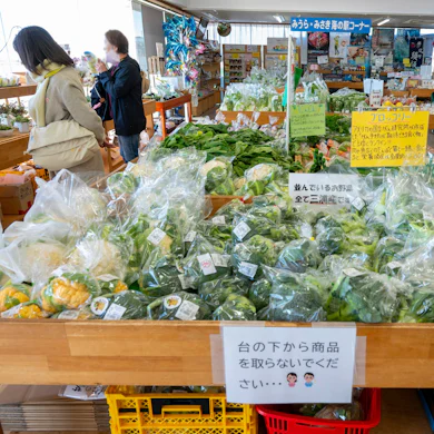 その2階には、新鮮な地場野菜や加工食品を取り扱う農産物直売所「やさい館」があります。