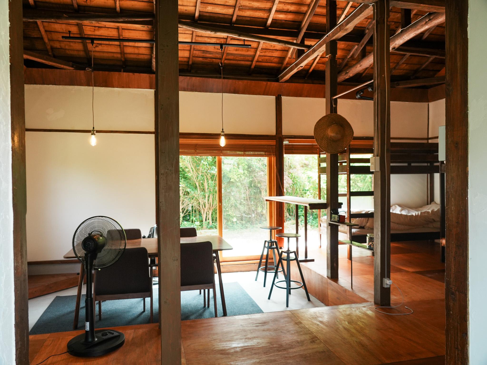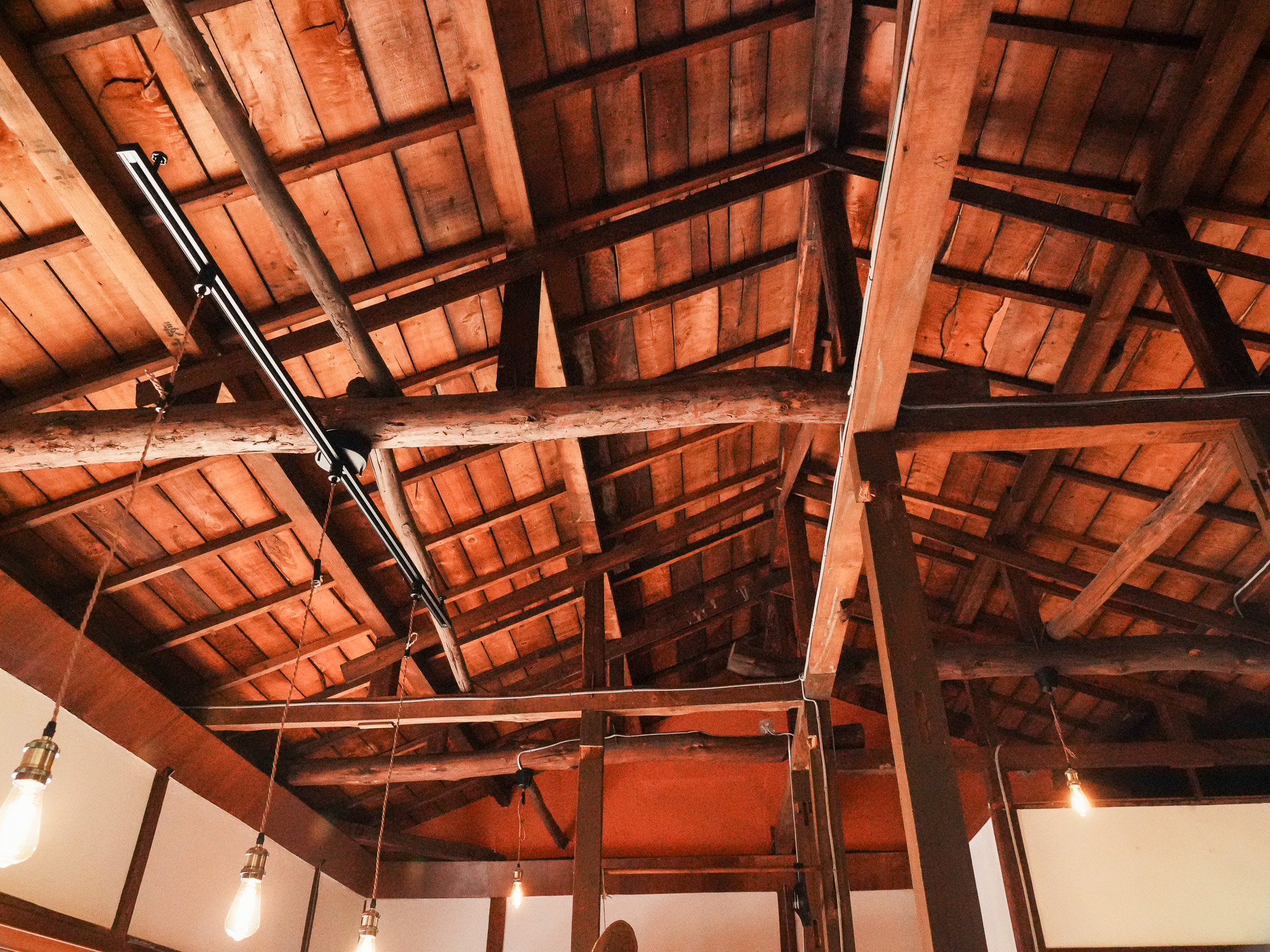 木造建築は、高い天井が特徴。梁を見上げながら深呼吸すると、不思議と心が落ち着いていきます。