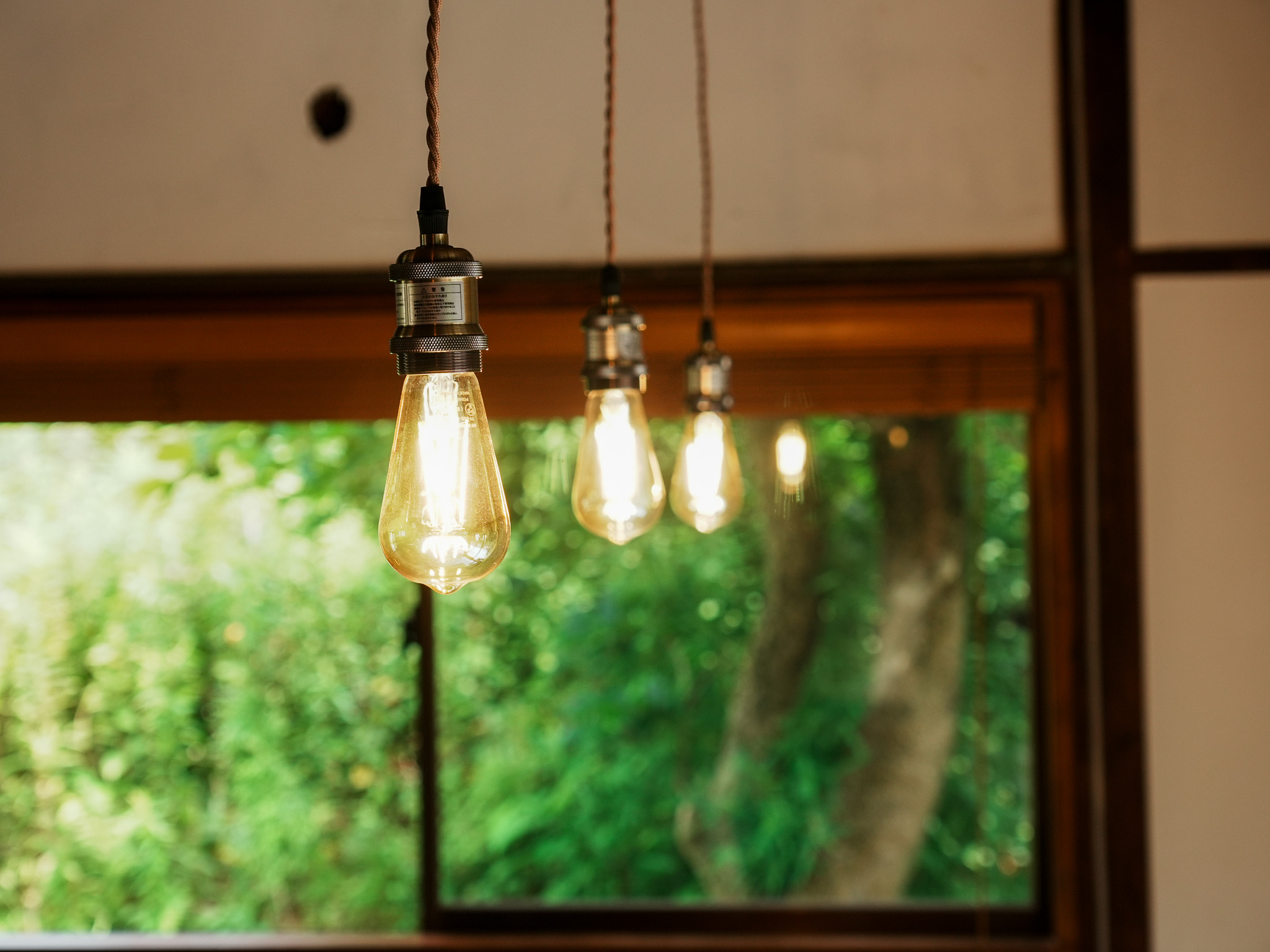 大きく開かれた窓からは、やわらかな自然光が差し込み、季節ごとの緑が部屋いっぱいに映り込みます。