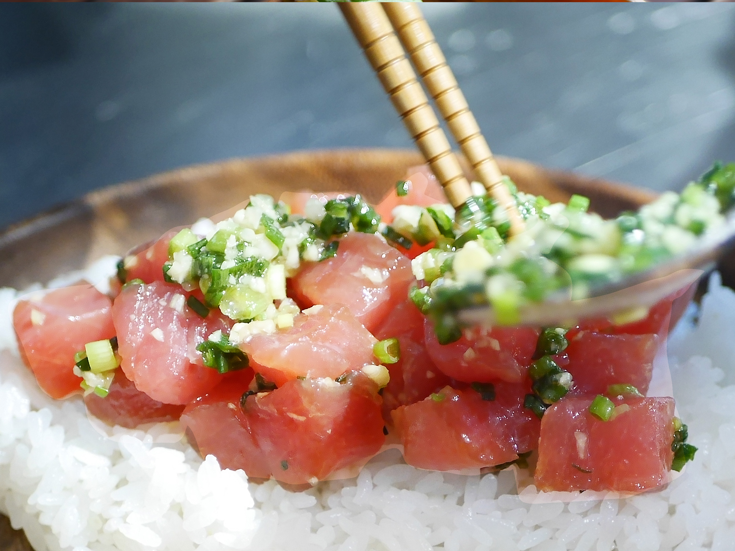 マグロは「スパイシーアヒポキ」よりやや大きめにカットされ、旨みをしっかりと感じられます。生姜とネギをたっぷり使った特製ジンジャーソースに、ハワイアンソルト、ごま油、醤油が奥行きを与え、さっぱりしながらもコクのある味わい。