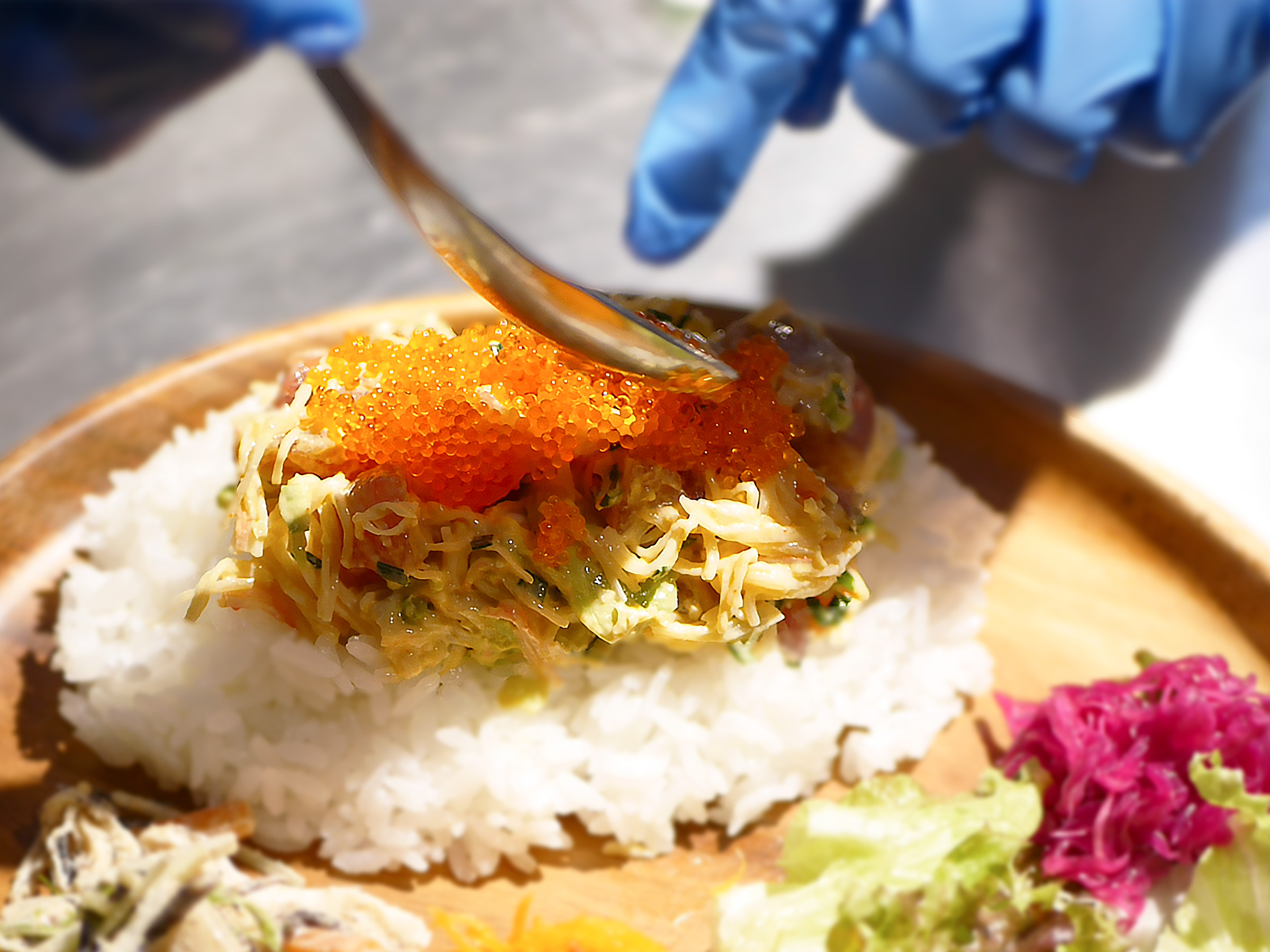 マグロはソースがよく絡むよう少し小さめの角切りに。赤身の旨み、とびっこのプチプチとした食感、カニカマとアボカドのコクが一体となり、最後まで飽きさせません。ふき子さんが、ハワイでお気に入りだった店の味を目指し、素材やソース、食感まで丁寧に作り込んだ“ここでしか味わえない”プレートランチに仕立てています。