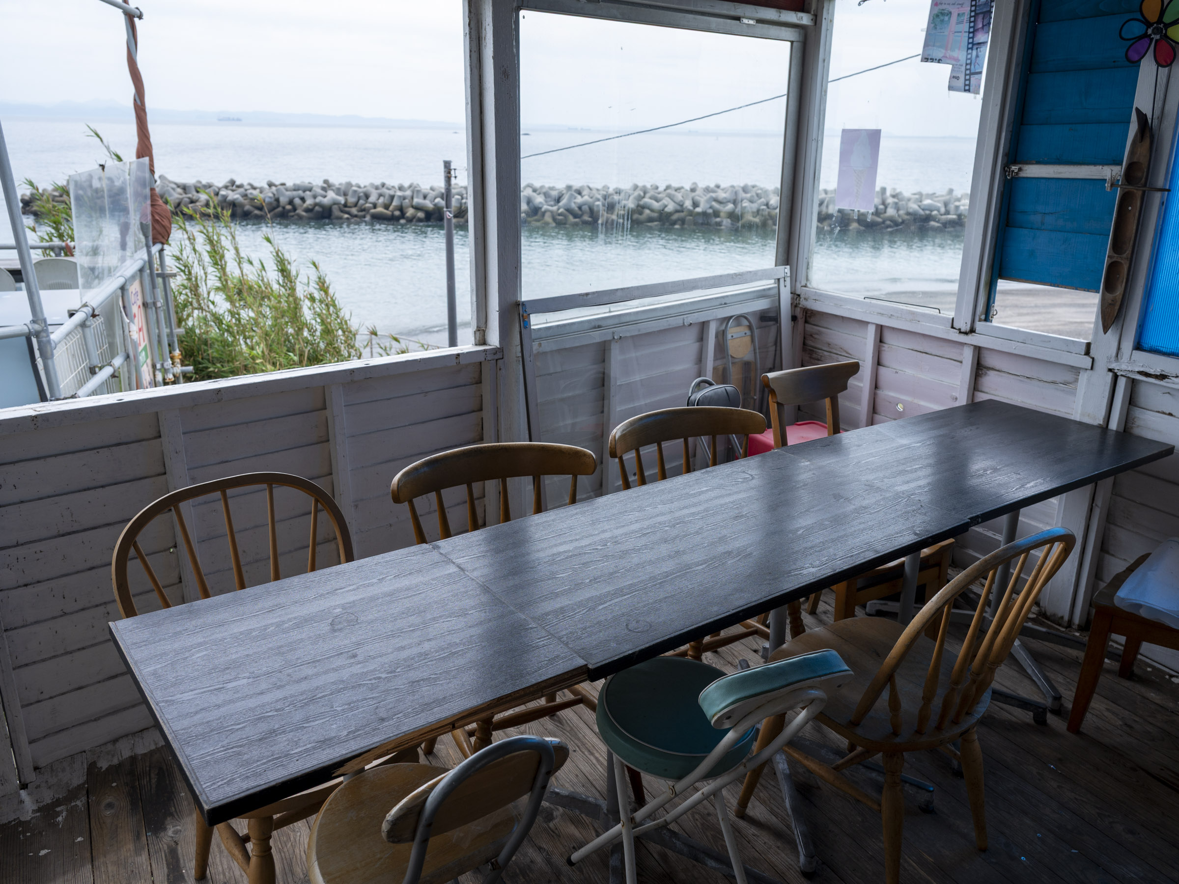 2024年に亡くなった前オーナーとは忘れられない思い出があります。2019年10月、関東地方に上陸し甚大な被害をもたらした台風19号は、野比海岸も襲いました。お店はほとんどのガラスが割れる被害を受けたそうです。