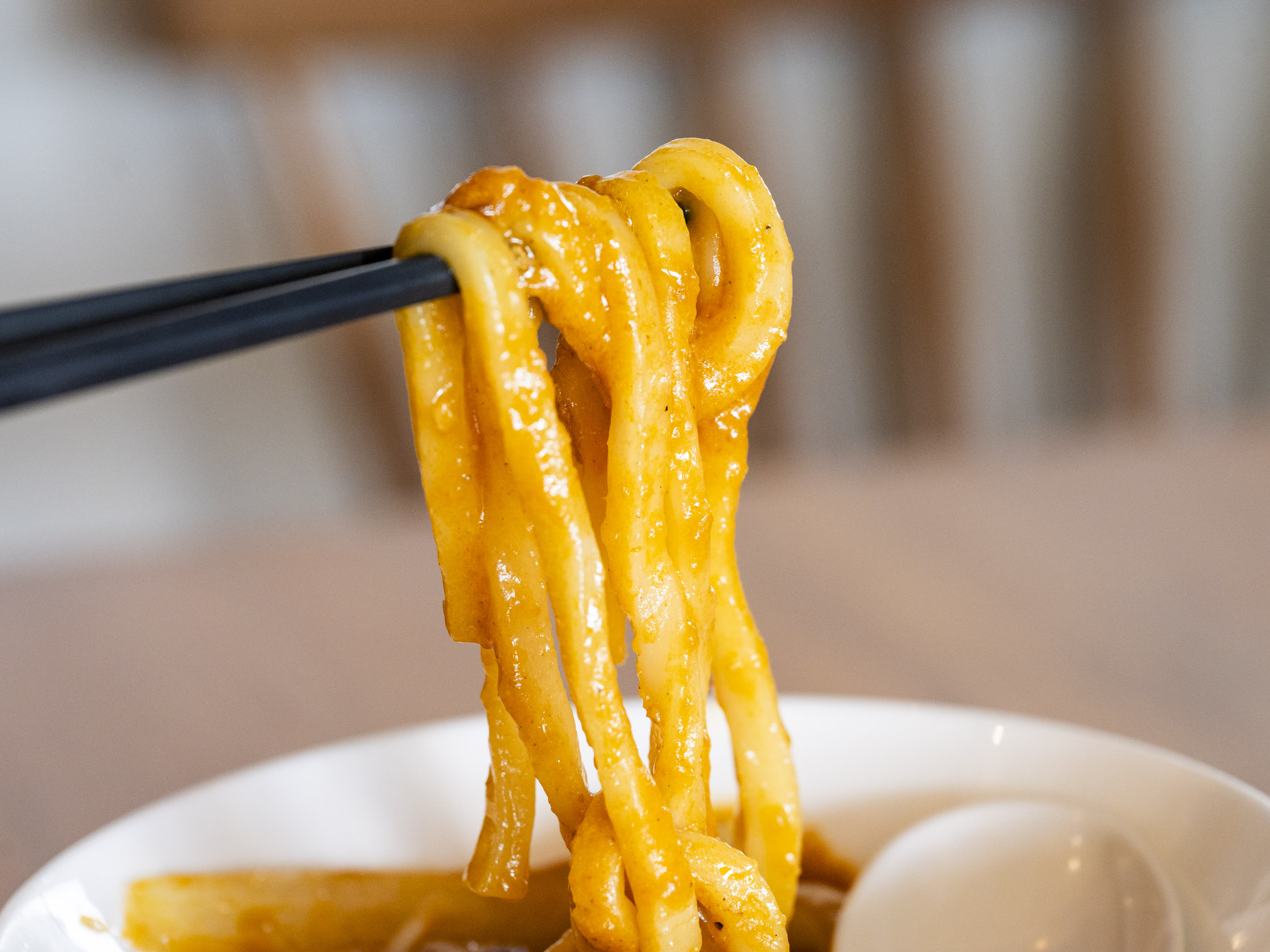 店頭に揺れる「カレーうどん」ののぼりに、思わず二度見する人も。