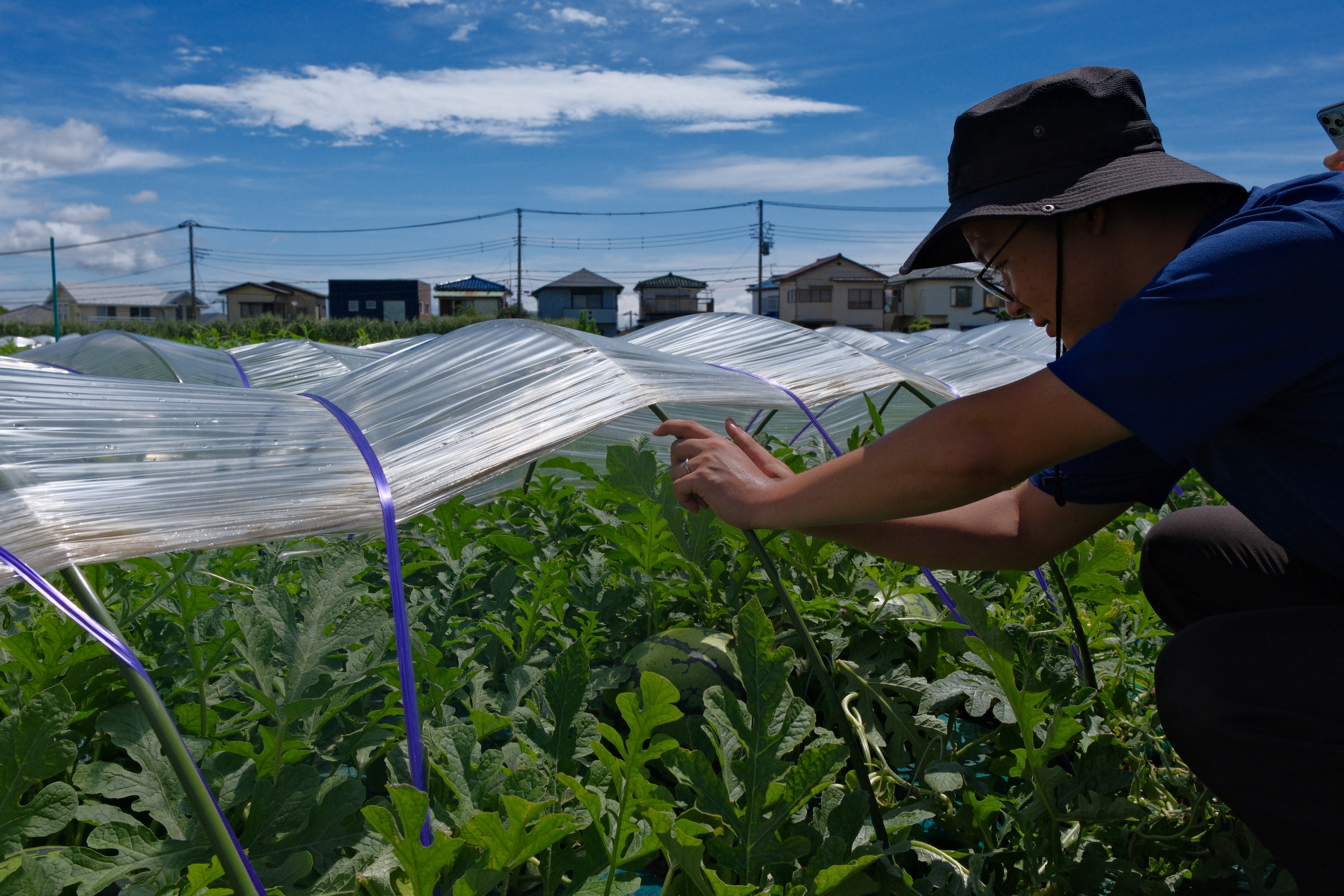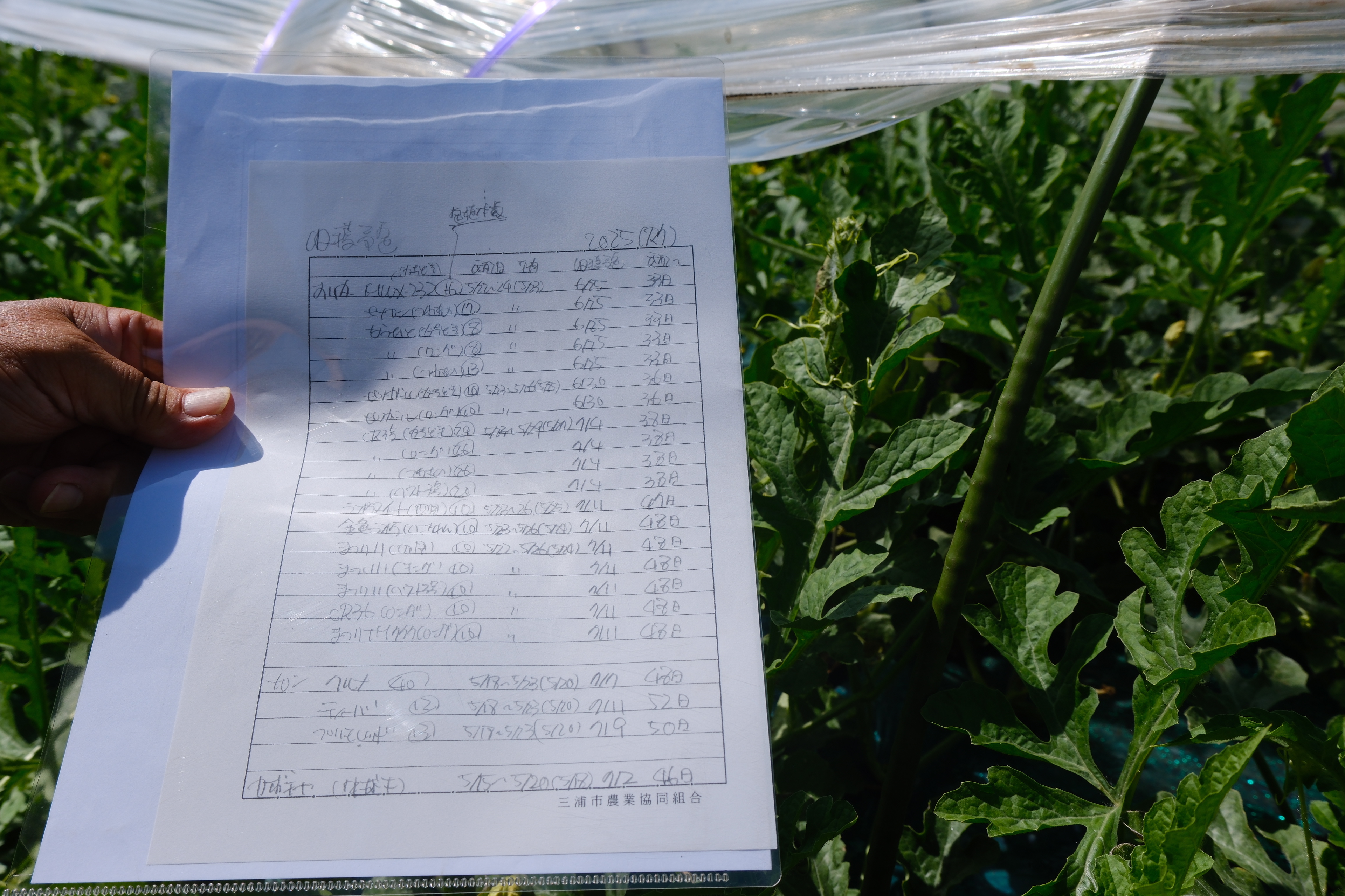 『三浦スイカの美味しい秘密』をテーマに、今回は、収穫2週間前の大切な作業工程の一つである「大玉スイカの玉返し」を、三浦市農業協同組合の研究畑を取材しました。