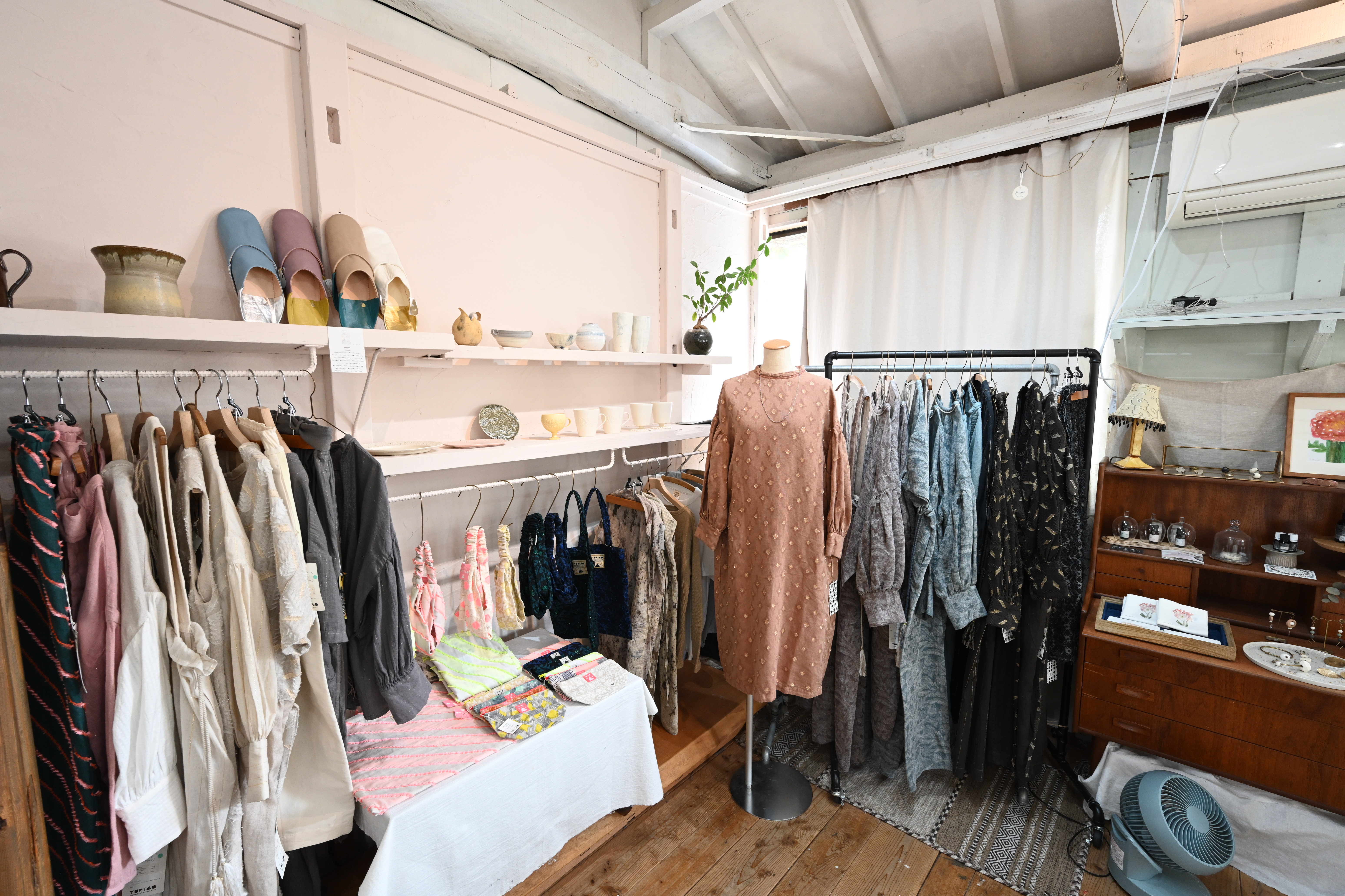 逗子近郊で活動する作家アイテムを中心に、器やアパレル、生活雑貨などをセレクトする「zuhka(ズーカ)」。店主・山本さんの“好き”を集めた空間は、表情が豊かでさりげなく個性が光るアイテムがひしめいています。