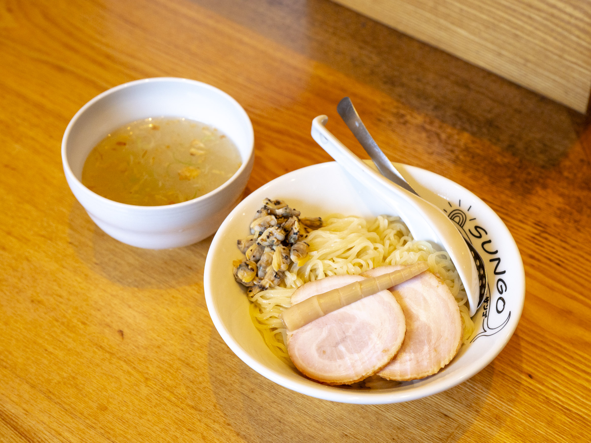 2020年12月オープンの「らぁ麺 SUNGO」はアサリの貝出汁と松阪牛の脂を使用したスープで人気のお店です。