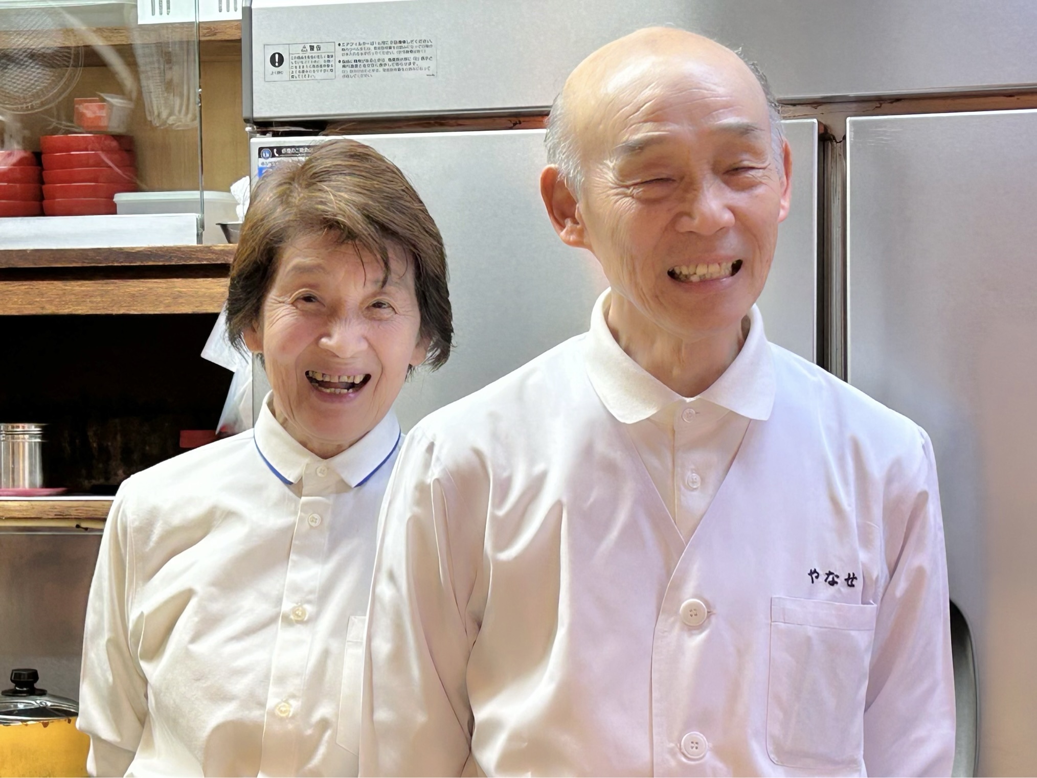 暖簾をくぐると三代目の簗瀬元好さん(77歳)と富美さん(77歳)のご夫婦があたたかく迎えてくれます。