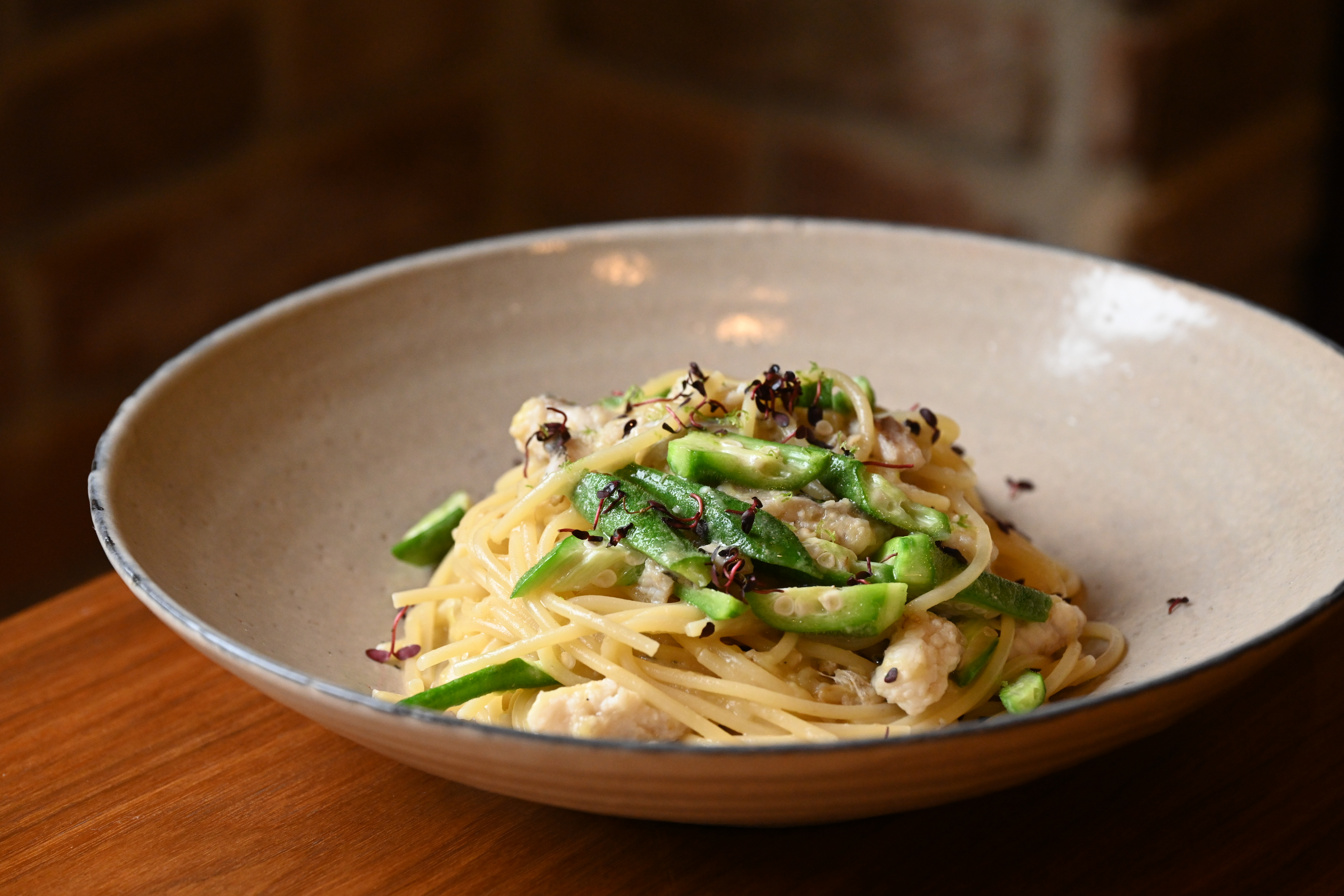 肩肘はらずに過ごせて、いつもより少し特別な料理を味わえる「Doicciane」。煉瓦をあしらった温かな空間も居心地良く、ついつい長居してしまいます。