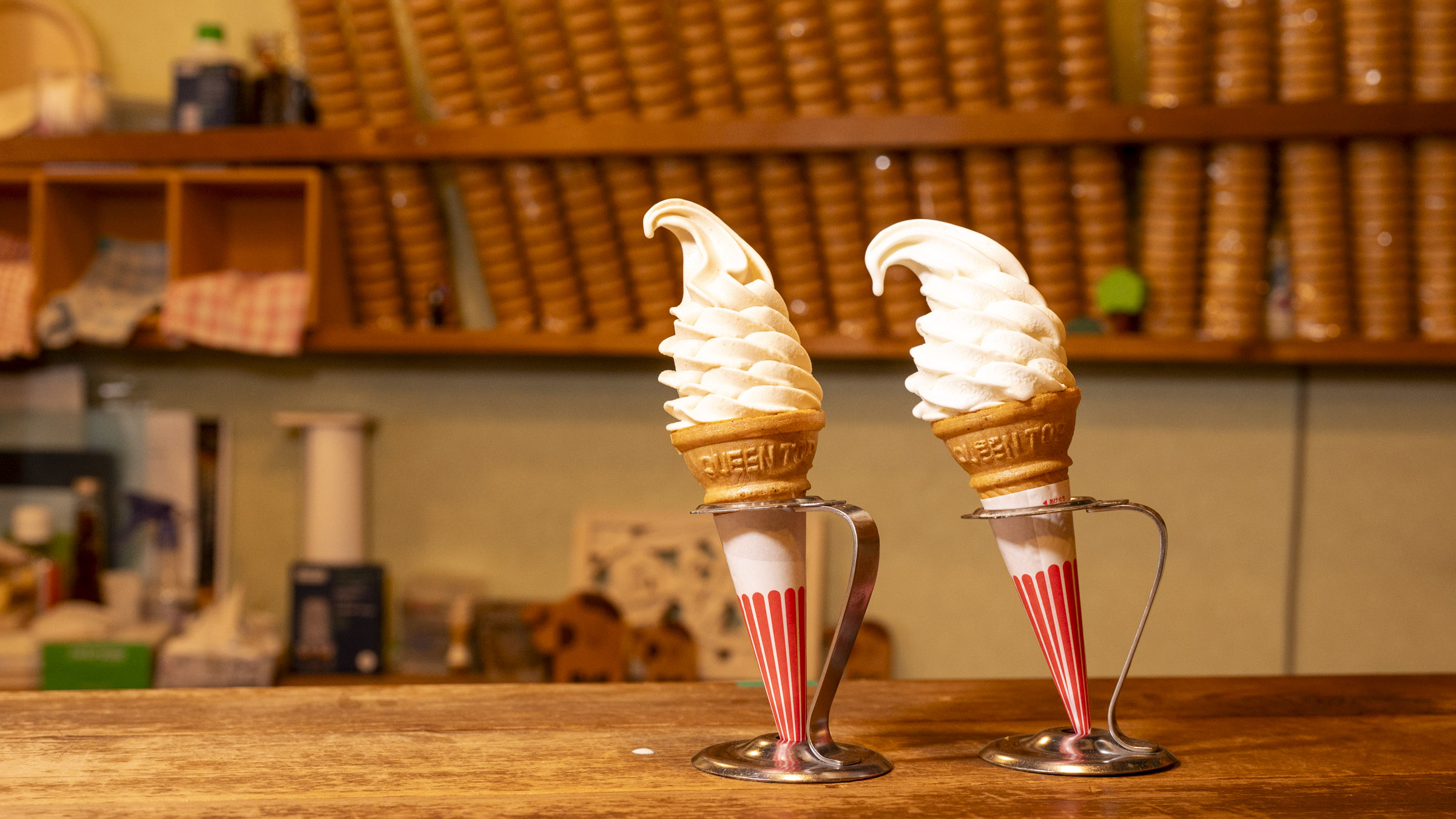 ミニサイズも用意されており、いずれもコーンかカップが選べます。断然コーンがおすすめ。最後までパリパリ感が続く上質なコーンです。