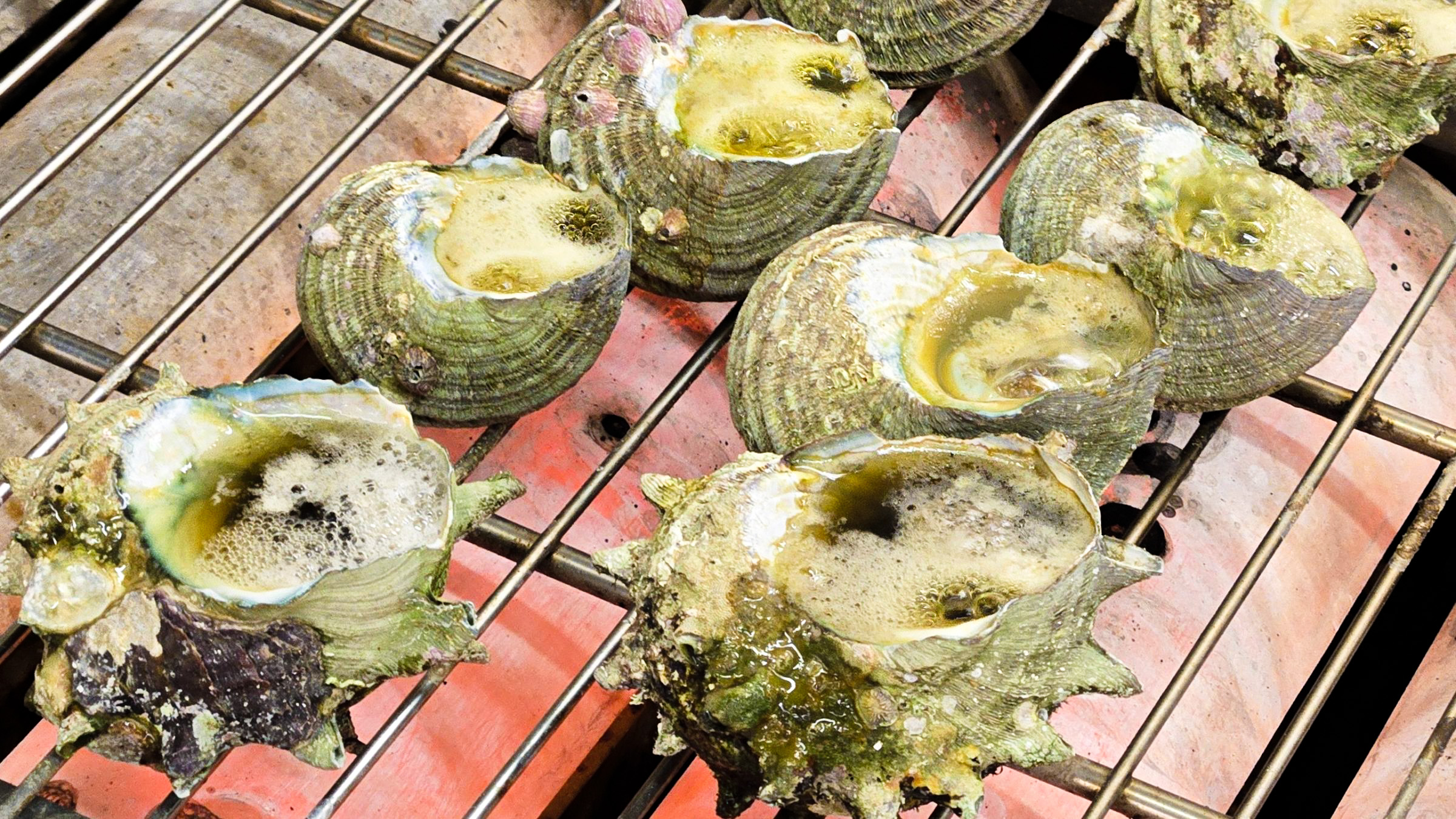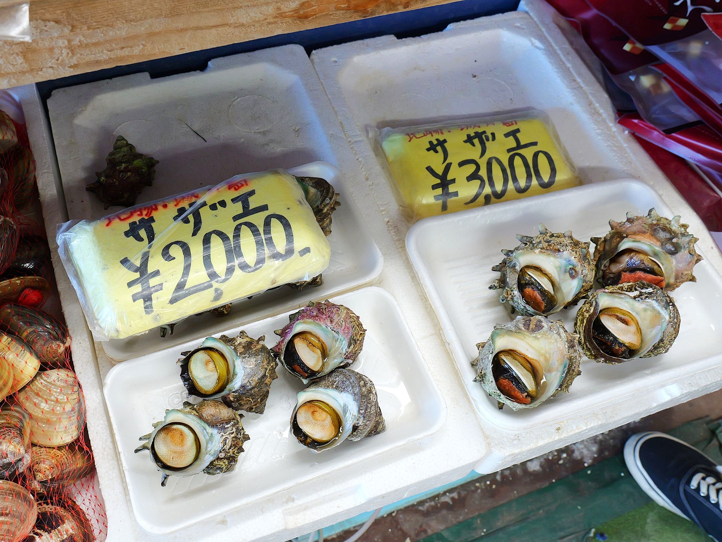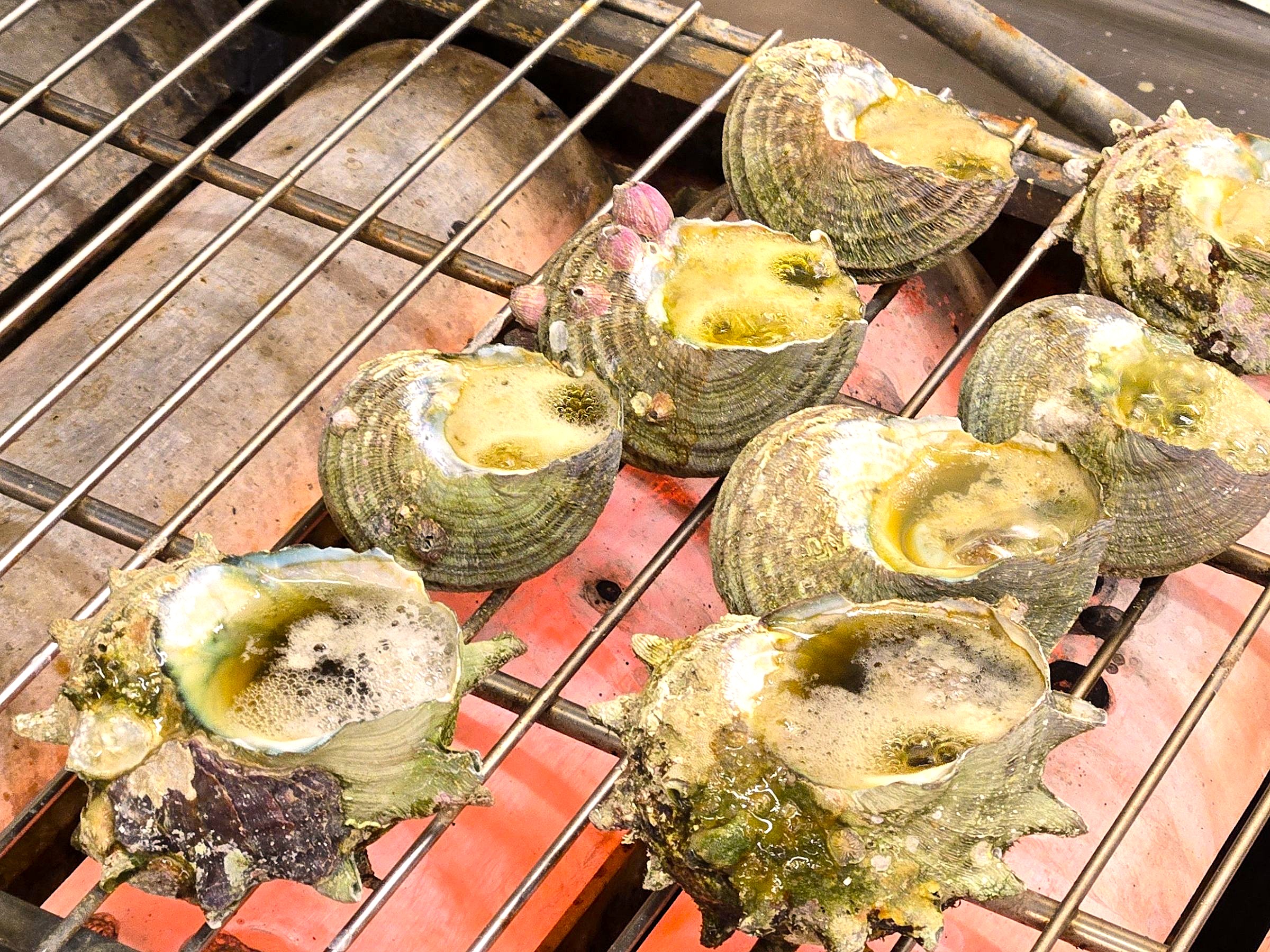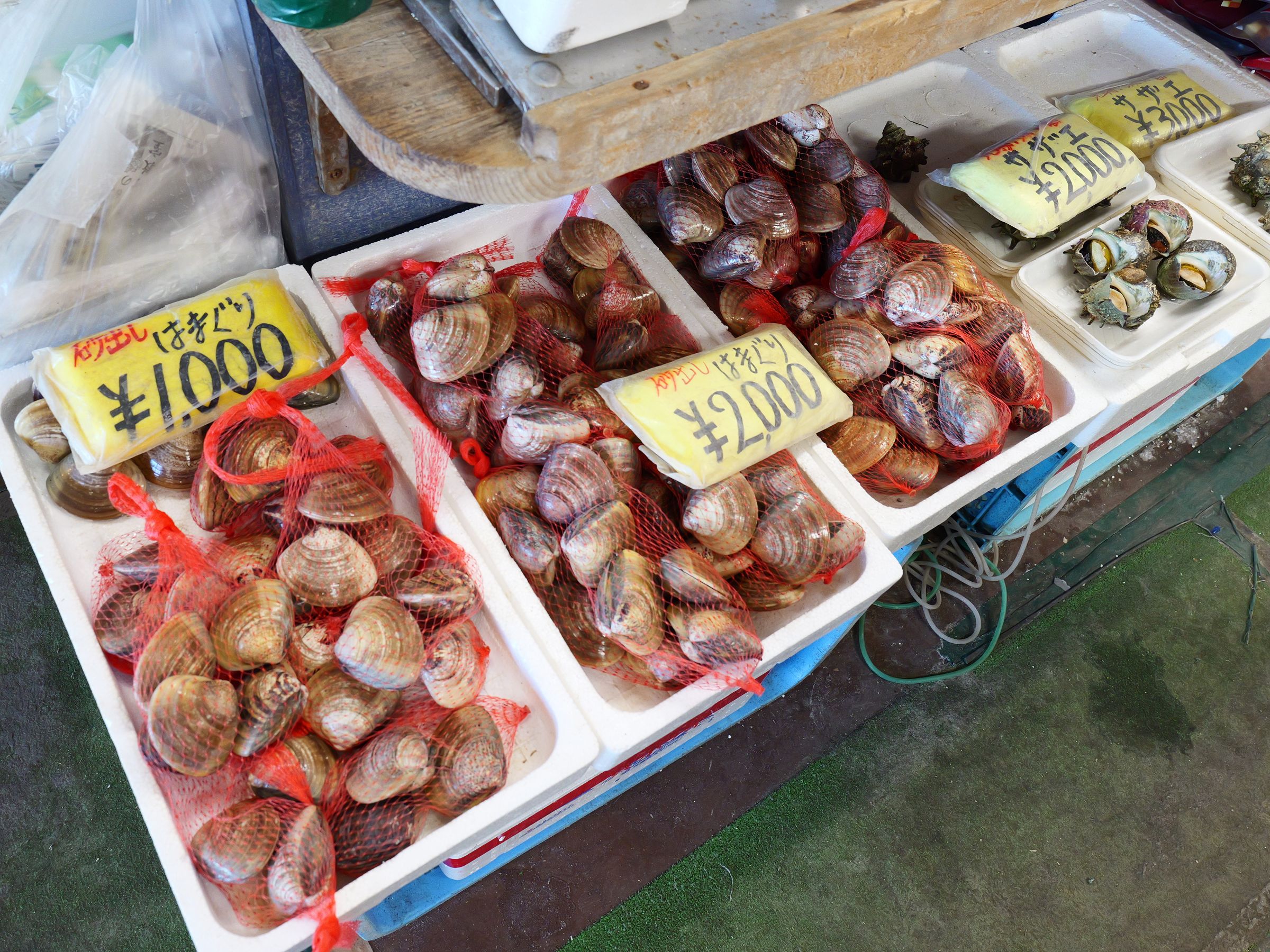 お腹が空いてきたので、実際にサザエ(1個600円)と、はまぐり(2個1,000円)を購入。