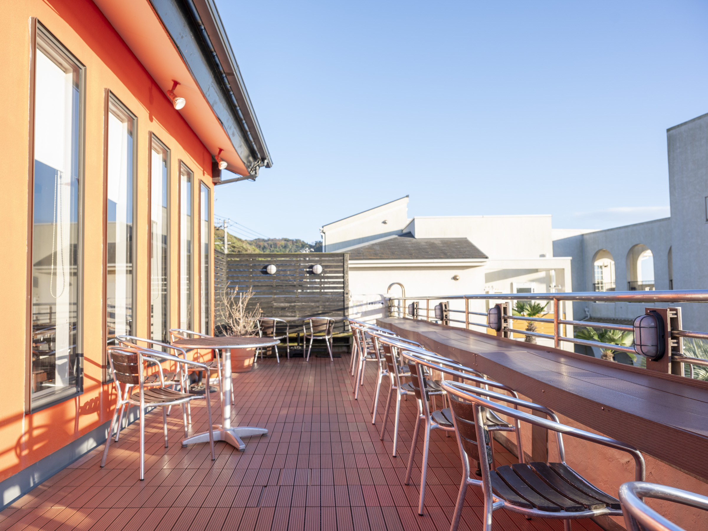 天気のよい日はテラス席から相模湾が見渡せます。遠くに見える富士山の大きさに驚かれることでしょう。