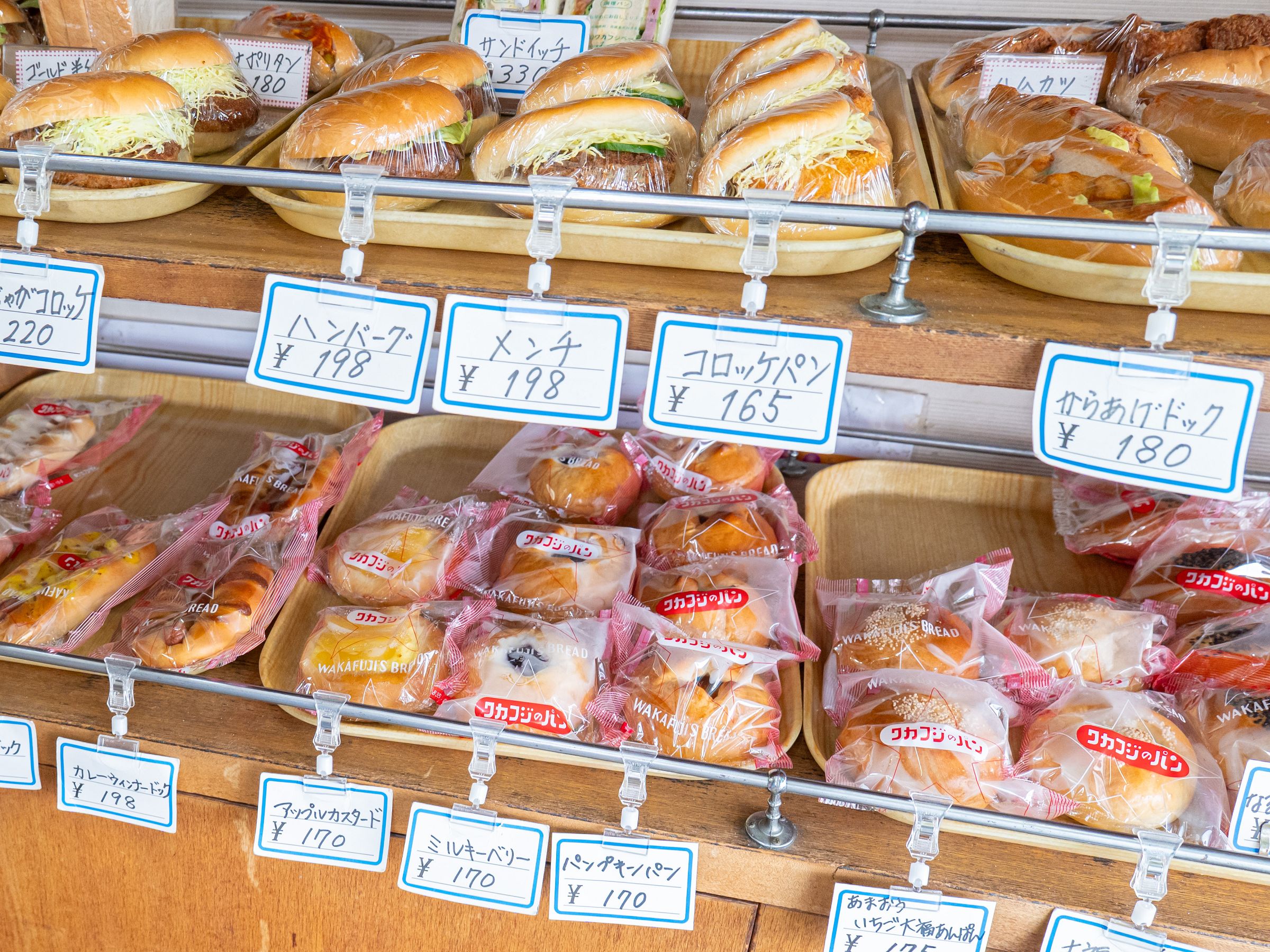 物価高騰の時代ですが、175円(現在199円)のくりはまあんぱんやポテチパンをはじめ、ワカフジベーカリーのパンは100円台の商品がたくさんあります。ジャムパンやメロンパンは130円(2025年4月時点150円)。