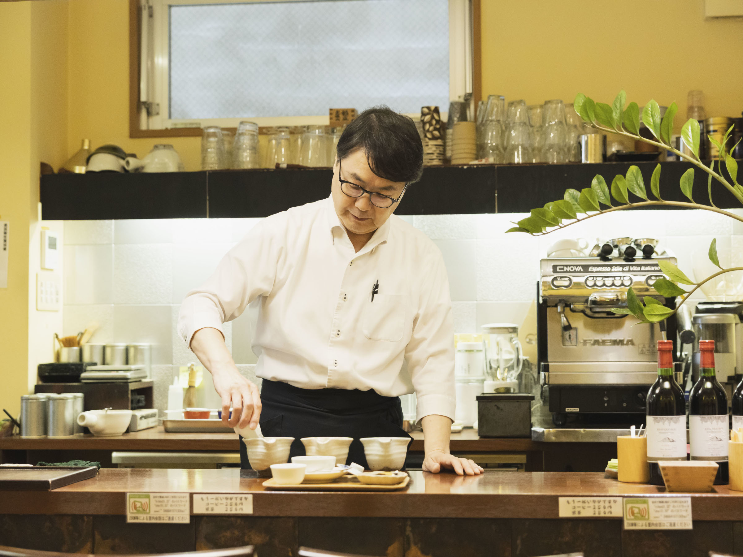 お茶を淹れるのは、店主であり、日本茶インストラクターの資格をもつ佐藤国久さん。独自に研究を重ね、お湯の温度、茶葉の種類、抽出時間などを徹底的に見極め、その茶葉が最も美味しく飲める一瞬をお客さまにお届けしています。