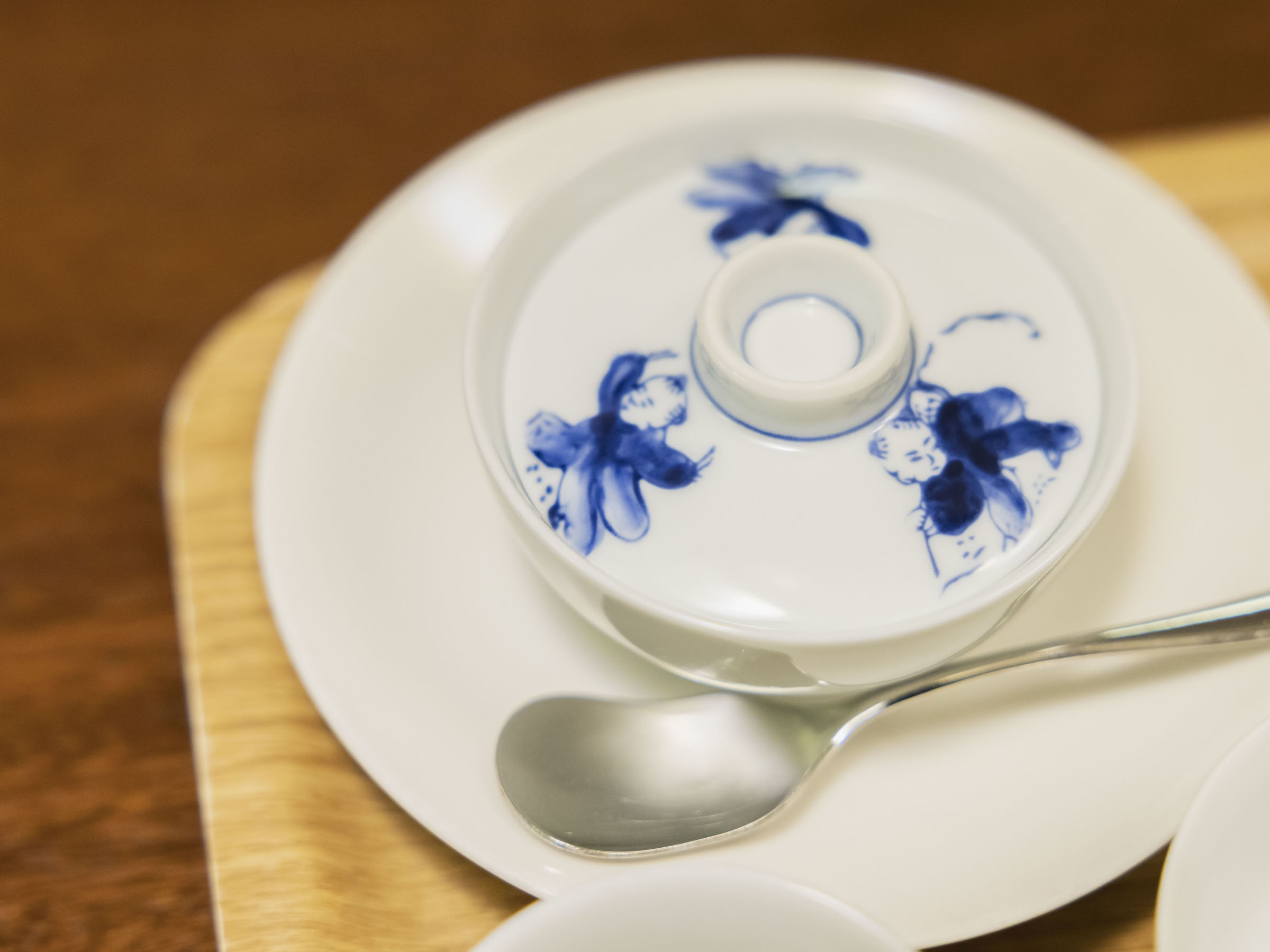 その間の時間は、お客さまと語り合うひととき。中国から日本へと伝わり、独自の文化を築いた茶の歴史を話題に花が咲きます。