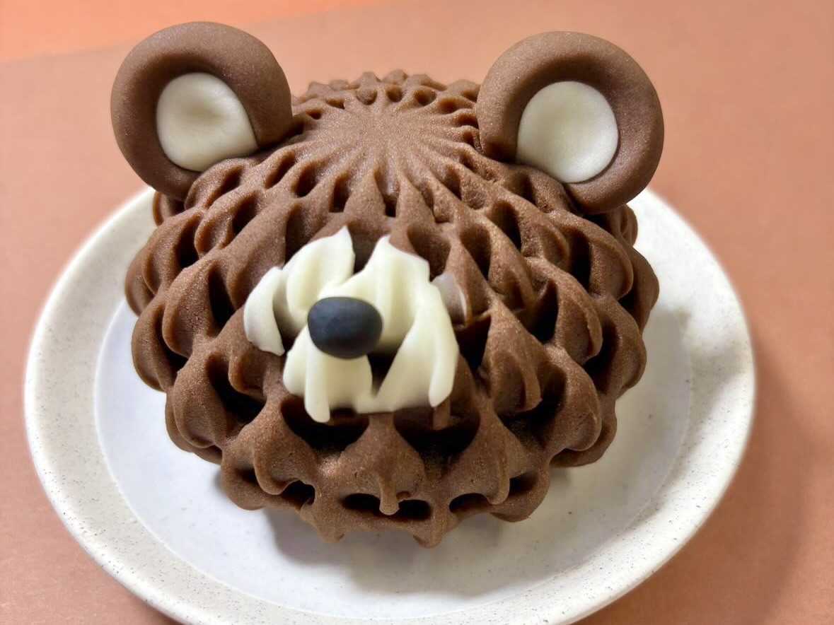 その技法を応用して生まれたのが、愛らしいクマの練り切りです。毛並みまで感じられる精巧さでありながら、どこかほっとする表情が魅力です。「伝統は守るだけでなく、今の時代に喜ばれてこそ生き続ける」職人の想いが、かわいらしい姿へと命を吹き込んでいます。