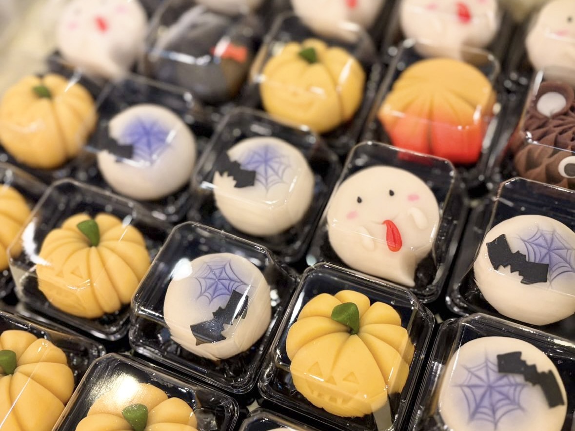 ハロウィンには、ジャック・オー・ランタンやゴースト、コウモリの練り切りが並びます。和菓子では珍しいモチーフも、手仕事を通すとやさしい和の趣に。こうした新しい試みが、若い世代や海外の人々と和菓子をつなぐ入口になっています。