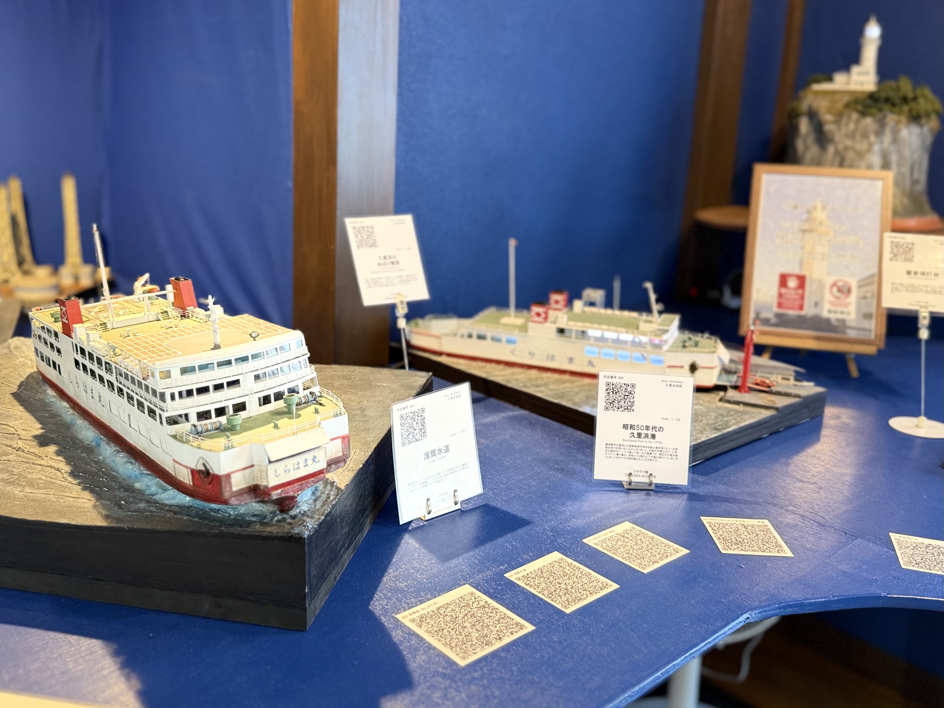 金谷港と久里浜港を行き交う「東京湾フェリー」の旧型船や、港の情景も丁寧に作られています。「ああ、昔はこうだったね」と、一瞬にして自らの記憶へと引き戻されます。ジオラマ館は2フロア構成。1階は「融合と懐旧」をテーマに、どこか懐かしく、それでいて現代的な感性が溶け合う情景が広がります。2階は「叙情と郷愁」のフロア。