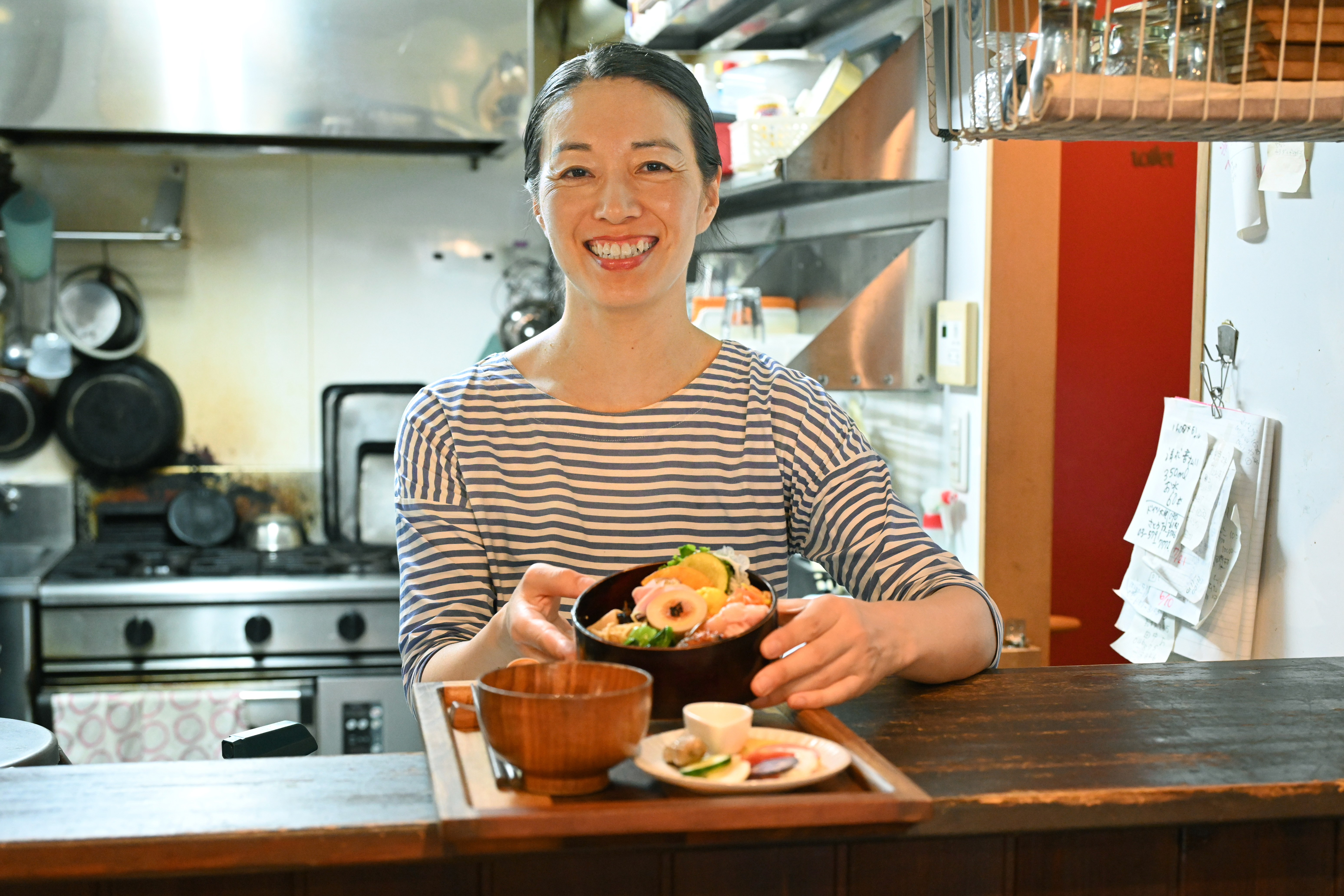 「“家族に作るごはん”をテーマに、野菜を中心とした見て楽しく、味わってうれしい、心と身体がよろこぶ料理をご提供しています。特にこだわっているのが見た目の美しさ。料理を運んだ時に、お客さんたちが『わぁ!』と喜んでいる姿を見るととてもうれしいですね」と話す、店主の髙橋香苗さん。