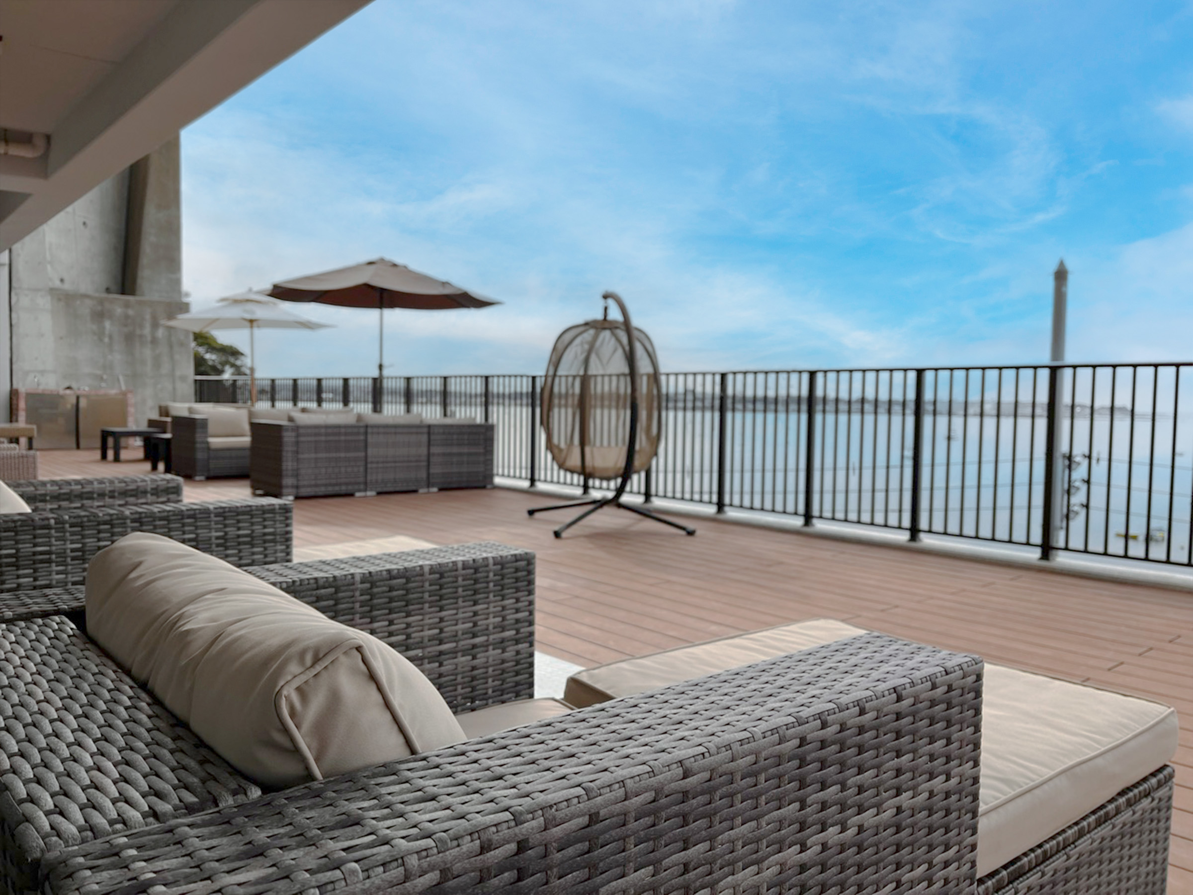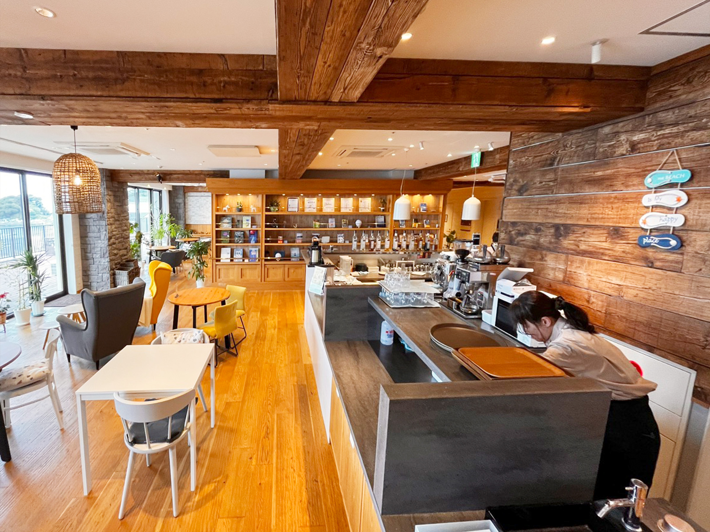 テラス席から眺める海と富士山、心地よい潮風、温かな接客。すべてが一体となって、食事の時間を特別なものにしてくれる場所。自由に本を手に取りながら、思い思いに過ごす人々の姿も印象的です。