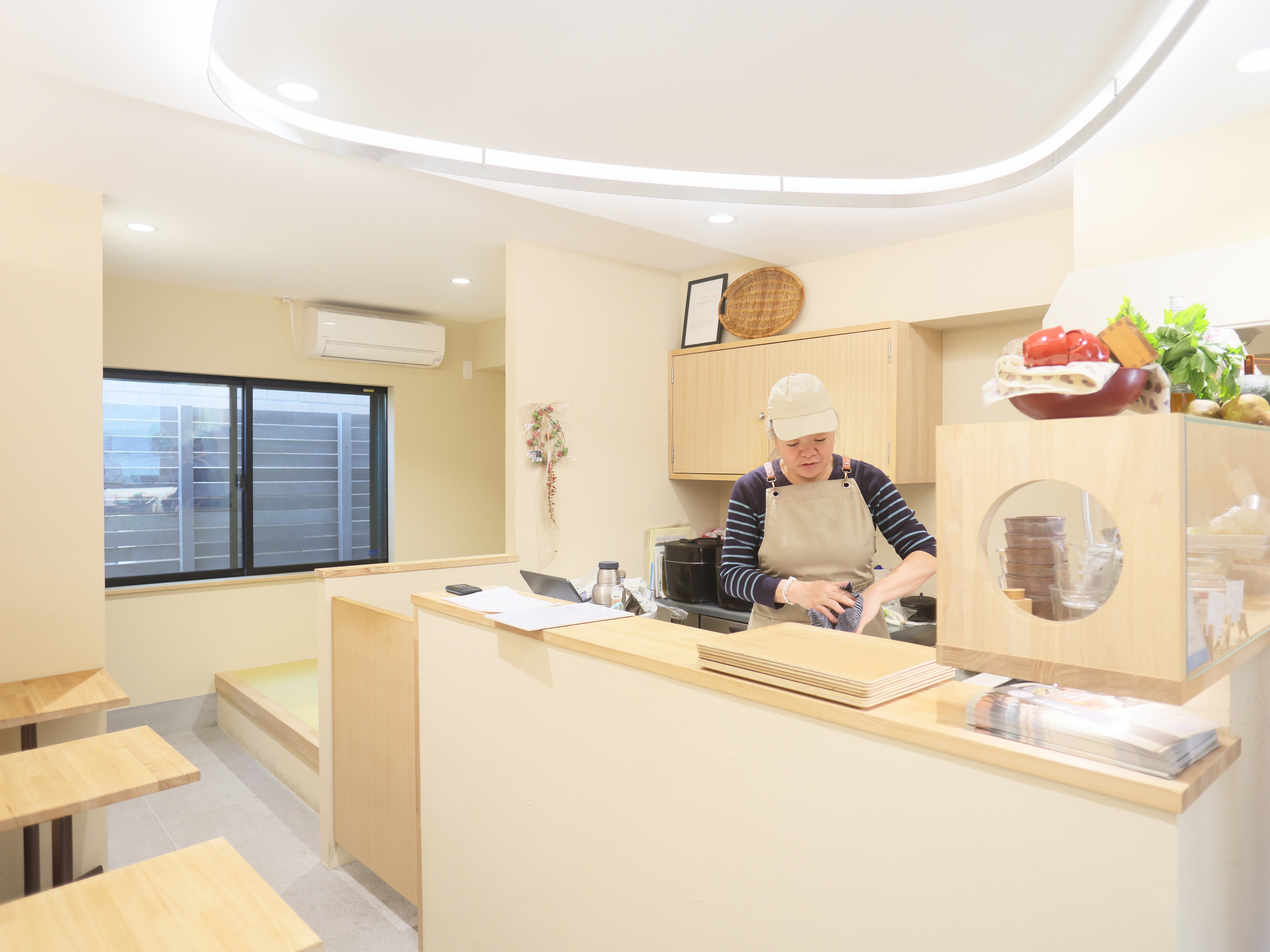 奥には家族連れやママ友同士の食事が楽しめる小上がりを用意。あとは一人で座るテーブル席が数席と、佐藤さんの目が届くコンパクトさです。