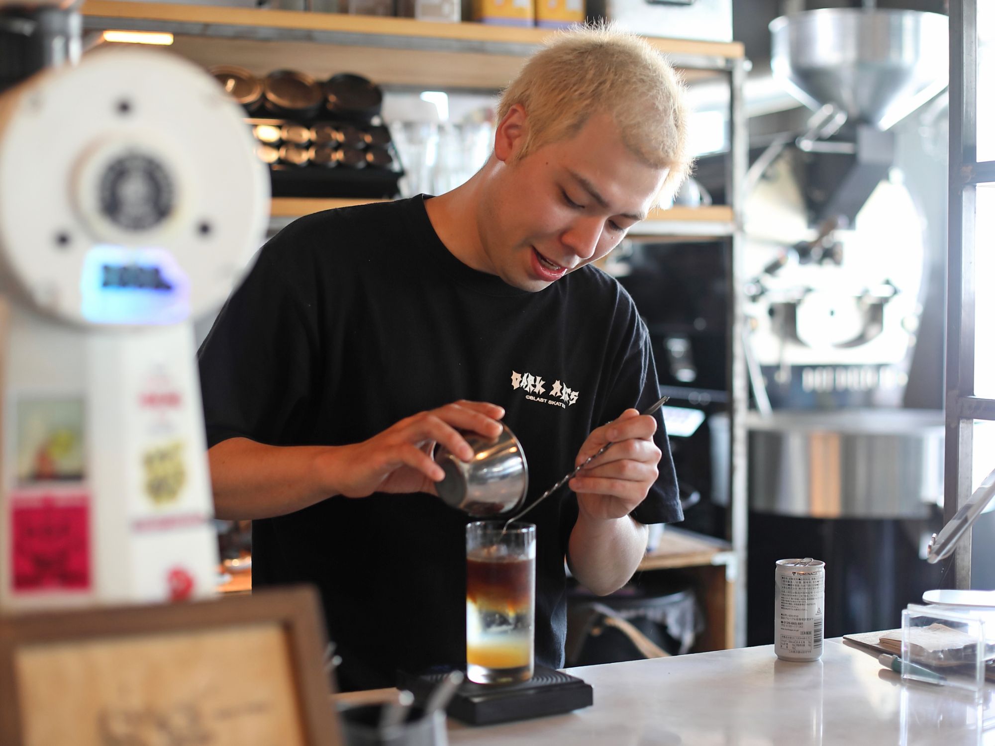 「別のお店でバリスタを始めたときに、同僚が『Dark Arts Coffee』のTシャツを着ていたんです。僕は昔からロックとかパンクといったカルチャーが好きだったので、そのTシャツを見たときに『これは何だ!?』と惹かれました」